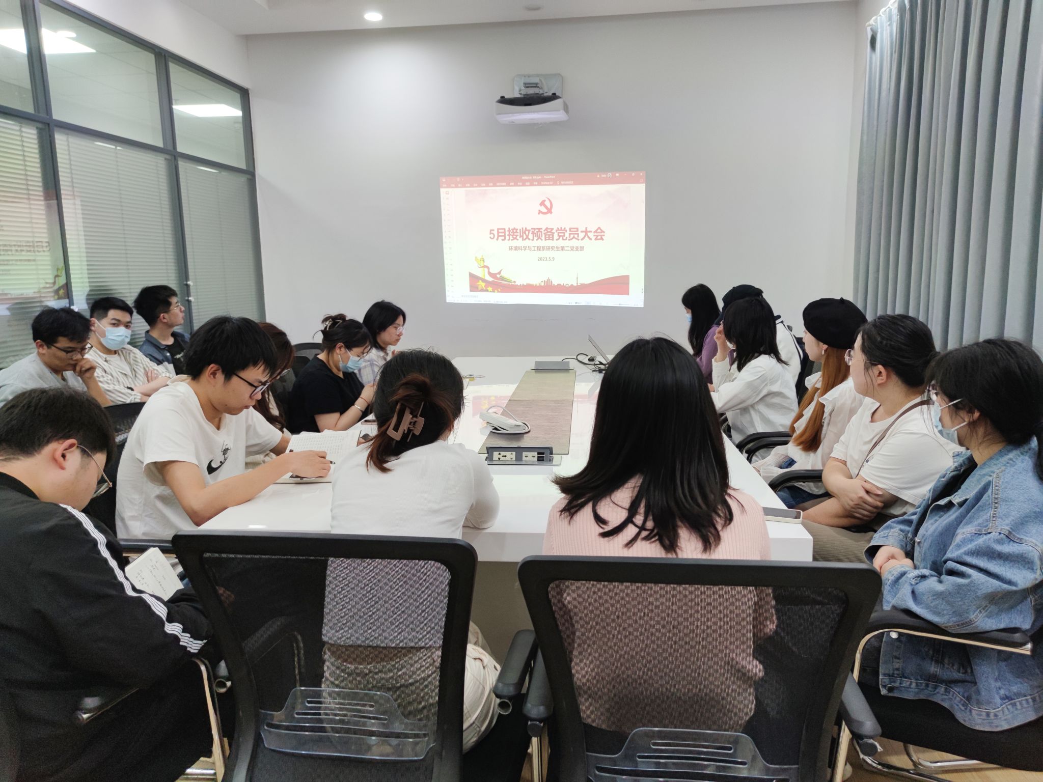 20235919:30,环境科学与工程系研究生第二党支部在电脑城430开展主题党会暨接收预备党员支部大会。会议应到正式党员24名,因事、因病请假2名,实到正式党员22名,有表决权的到会人数超过应到会有表决权人数的半数,符合规定人数。
