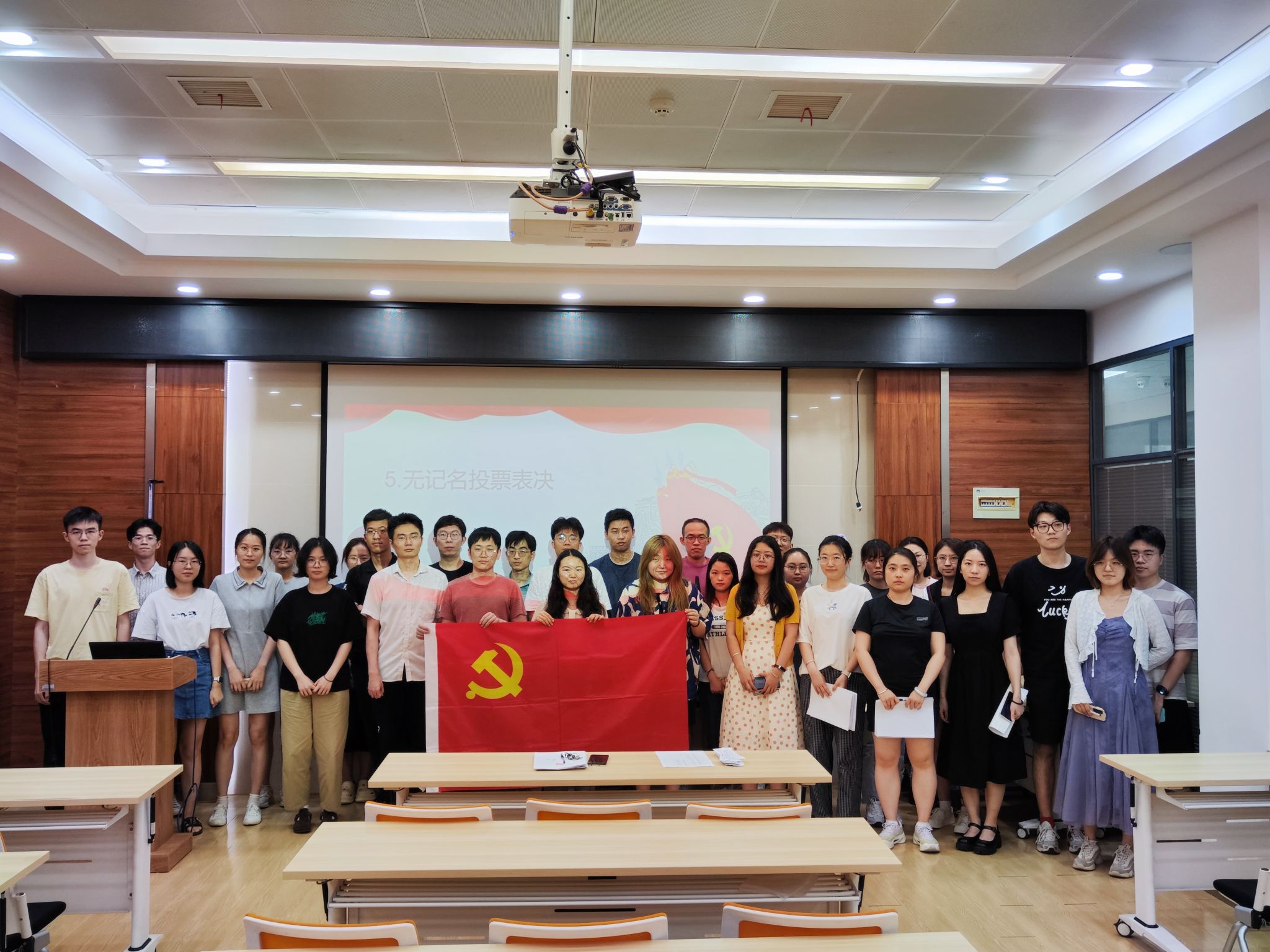 2023年5月31日下午16:30,地理信息与地图科学系研究生第四党支部于电脑城429会议室召开了姜涛、朱邵聪与苏恒同志的预备党员接收大会,本次大会由支部书记焦丹同志主持。会议伊始,焦丹同志首先向大家汇报列席本次会议的人员情况。实际出席会议正式党员24人,预备党员3人,积极分子5人,具有表决权的正式党员到会人数超过应到人数的一半,符合规定的人数要求。