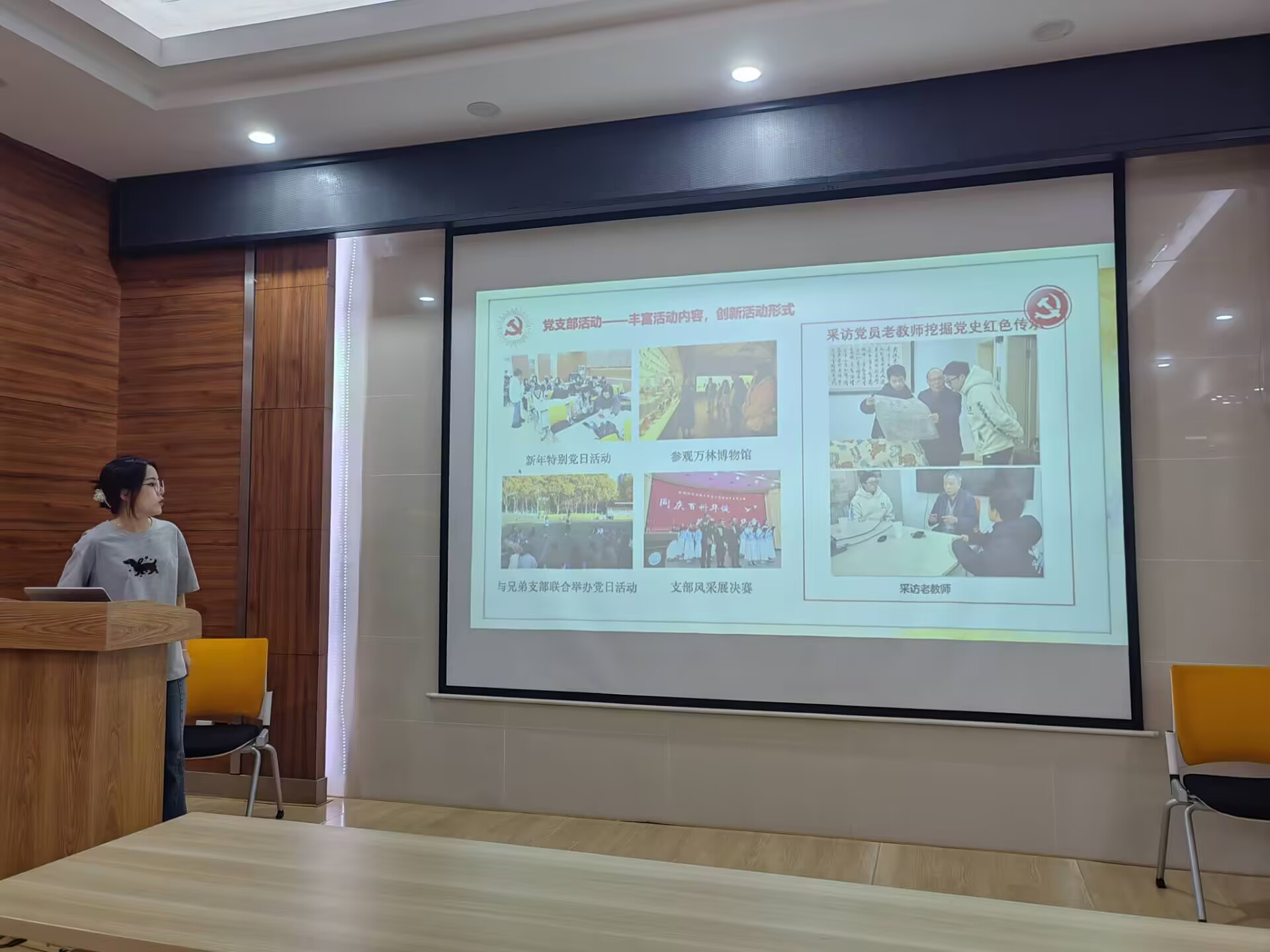 会议第一项,支部年度工作总结。胡冉再琪同志紧扣理论学习主题,回顾过去一年来支部举办、参与的相关活动,总结过去一年支部党建工作成果。充分展示了支部学习贯彻习近平新时代中国特色社会主义思想的相关成果。同时也总结了过去一年党支部工作中的问题及整改措施。