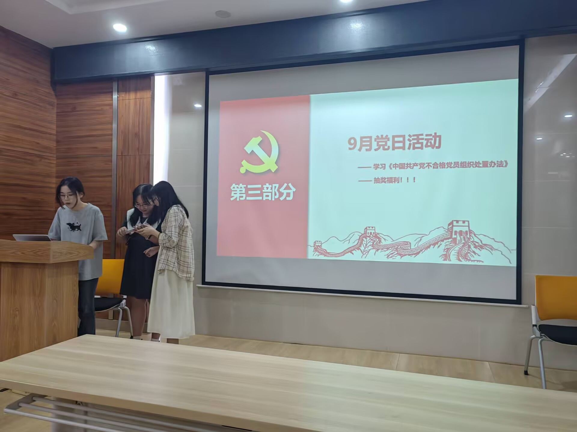 会议第三项,开展组织生活会和九月党日活动。胡冉再琪同志带领支部集体学习了《中国共产党不合格党员组织处置办法》。通过学习,同志们更加清晰地认识到作为一名合格党员的标准和要求,明确了自己肩负的责任和使命。新老党员们热切交流,分享学习感悟。