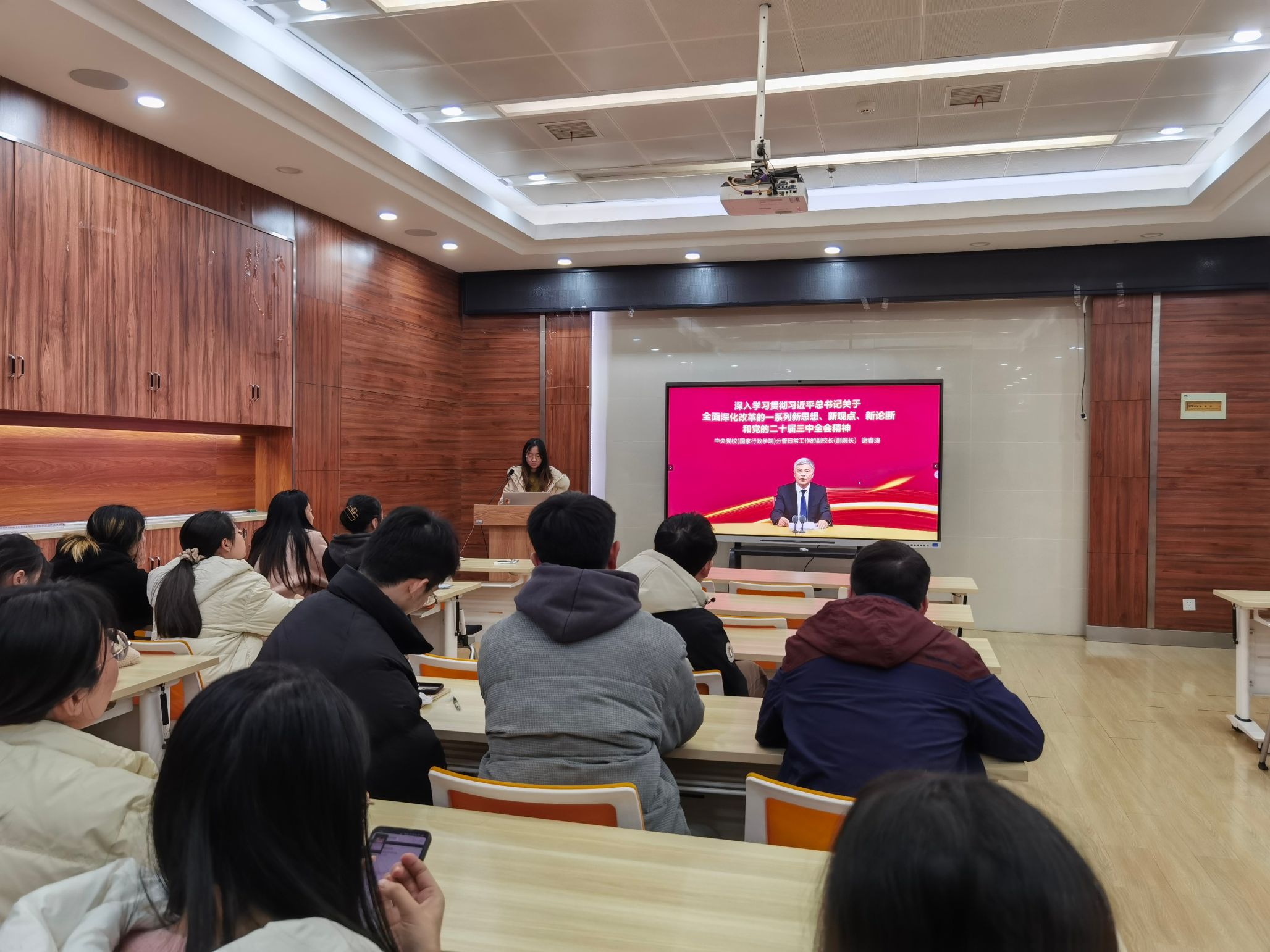 会议第二项,党支部书记许澎组织开展学习贯彻党的二十届三中全会精神主题党日,支部成员集中观看了《深入学习贯彻习近平总书记关于全面深化改革的一系列新思想、新观点、新论断和党的二十届三中全会精神》的视频课程。全会最重要的成果是审议通过《中共中央关于进一步全面深化改革、推进中国式现代化的决定》,提出300多项重要改革措施,许澎同志重点介绍了进一步全面深化改革贯彻六条原则、推进中国式现代化的战略重点、关于深化教育科技人才体制机制改革、关于党的领导和党的建设制度改革等方面的内容。
