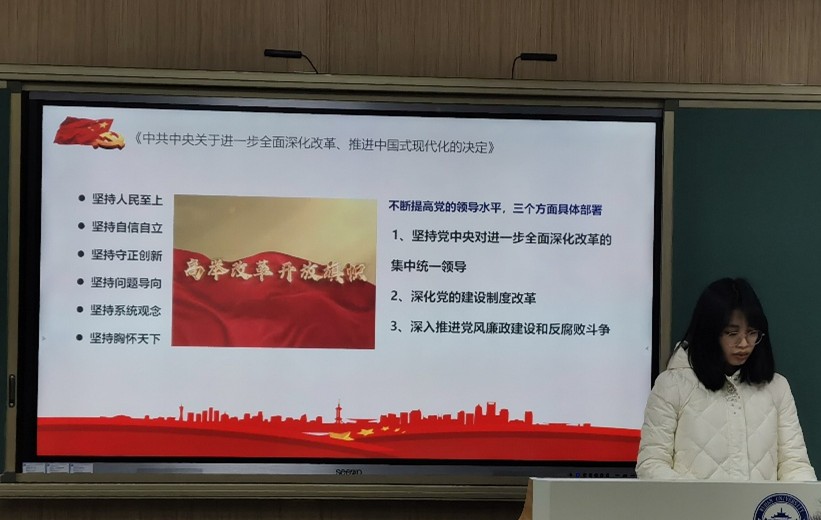 会议第一项,党支书许思敏同志带领大家学习党的二十届三中全会精神,对照党的政治纪律、组织纪律、廉洁纪律、群众纪律、工作纪律、生活纪律的主旨要义和固定要求,深入检视和学习习近平总书记关于全面加强党的纪律建设的重要论述情况和学习贯彻《条例》情况。并深入学习《中共中央关于进一步全面深化改革、推进中国式现代化的决定》,强调了不断提高党的领导水平的3个方面的具体部署。