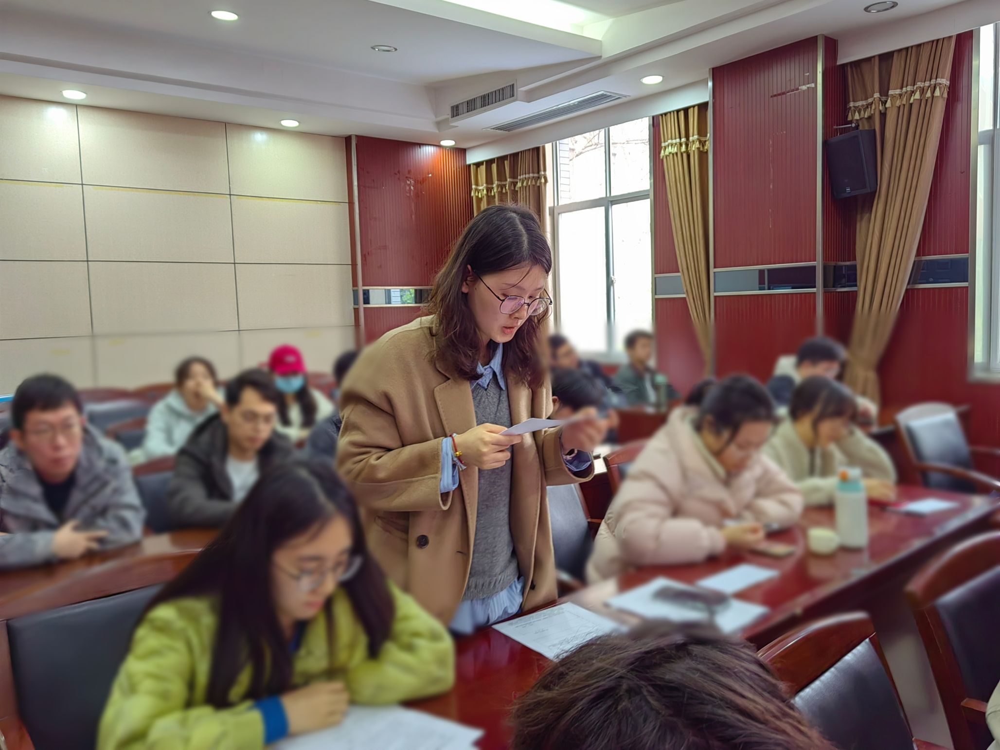 会议第二项,讨论接收谢光磊、王睿、李余郁同志为预备党员的事宜。首先,谢光磊、王睿、李余郁三位同志向党支部汇报对党的认识、入党动机、本人履历、现实表现等有关情况,结合个人科研实践与志愿服务经历,深刻阐述对党的认识与初心使命。入党介绍人及支委会汇报培养考察情况,与会正式党员发表意见,认为三位同志政治立场坚定、综合素质过硬,符合党员标准,同意接收为预备党员。经正式党员无记名投票,三位同志获同意37票,反对0票,弃权0票。党支部书记江河宣读大会决议,同意接收谢光磊、王睿、李余郁同志为中共预备党员。