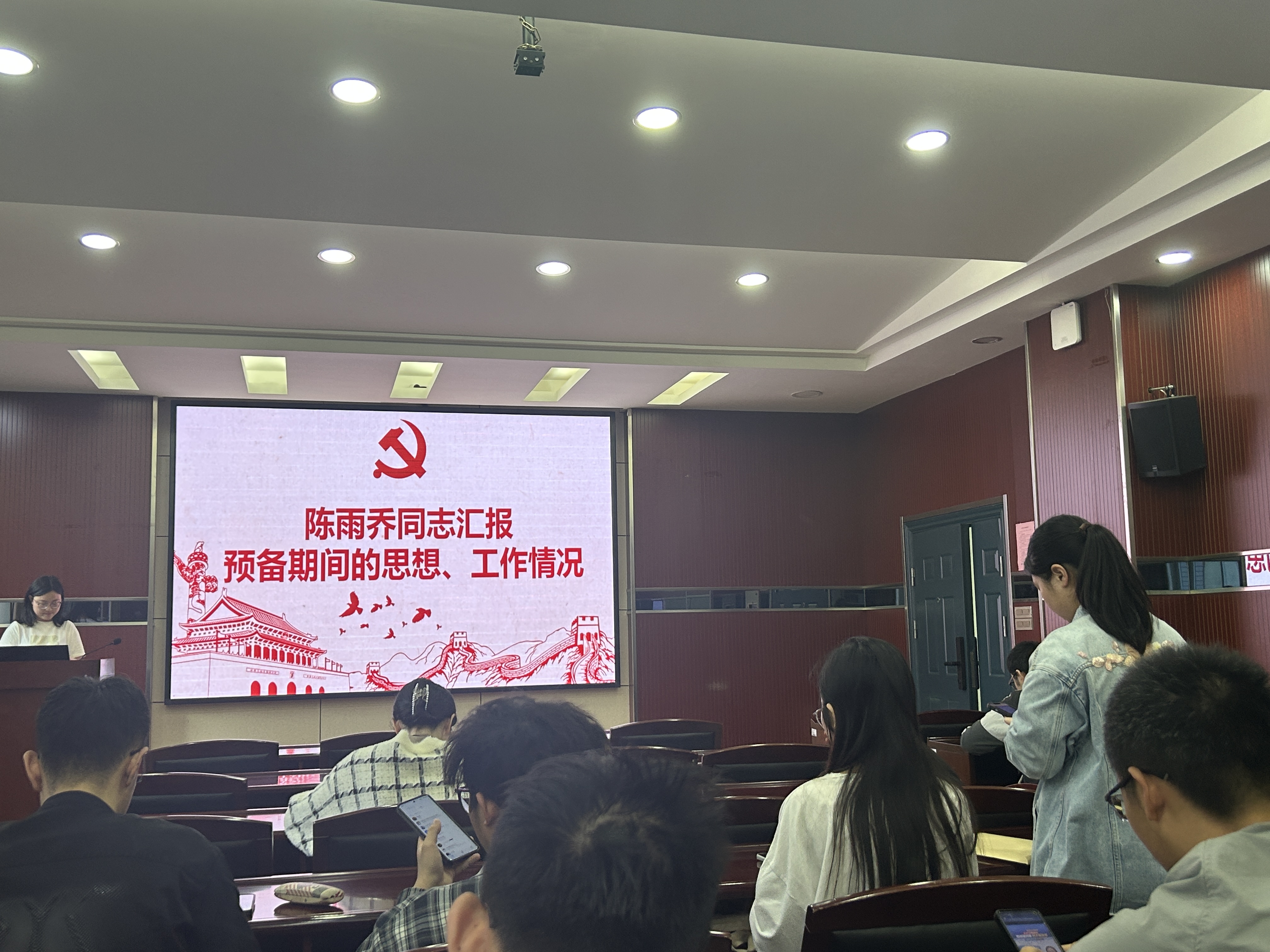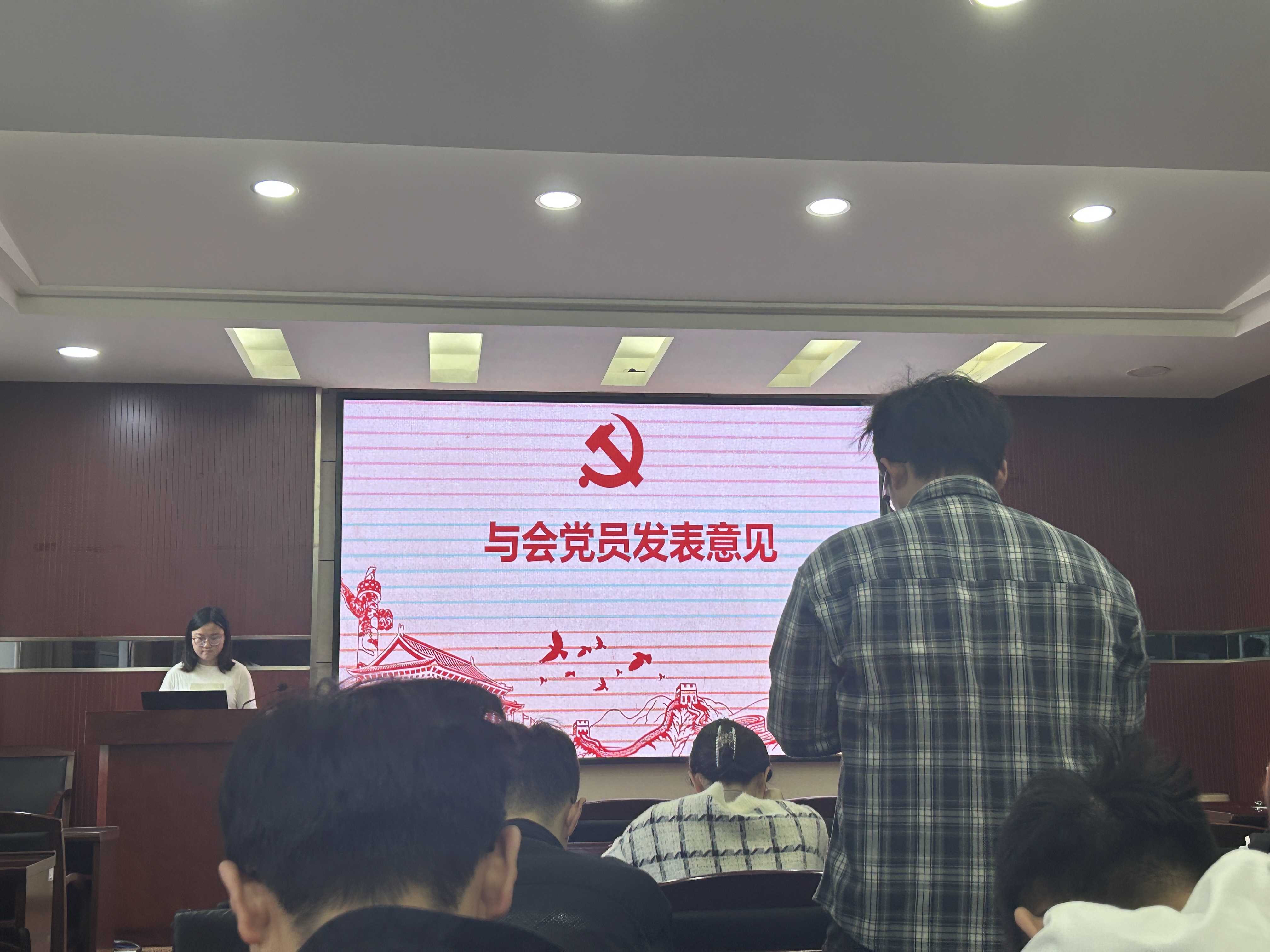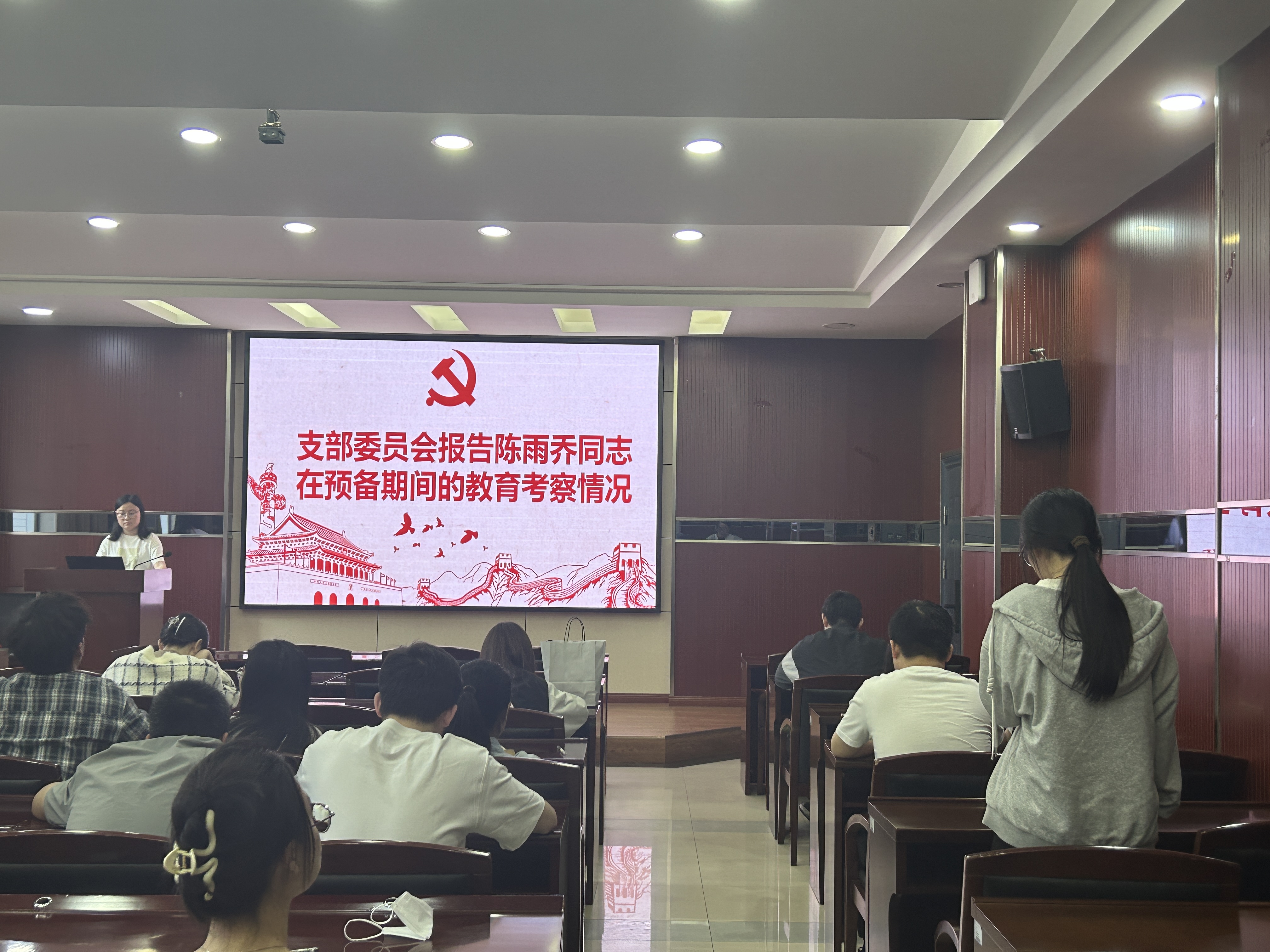 会议第二项,党支部副书记牛羽庆同志介绍陈雨乔同志预备期间的教育考察情况。