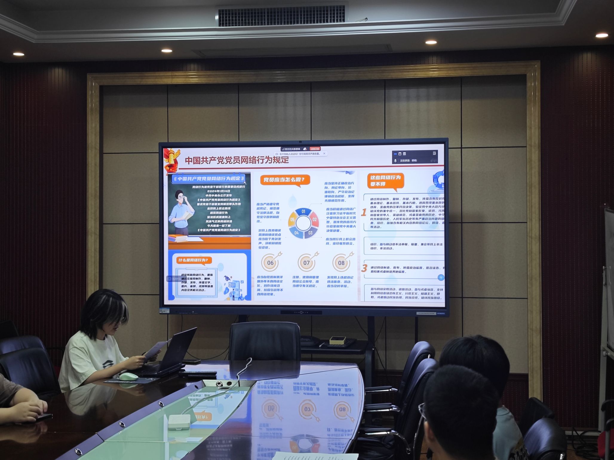 会议第一项,开展主题党日活动。网络行为是党员干部言行的重要组成部分,2024年1月14日,中共中央办公厅发布《中国共产党党员网络行为规定》,要求党员干部要发挥模范带头作用,走好网上群众路线,规范网络行为。与会党员认真学习行为规范,表示将从自身做起,文明上网,守护清朗网络空间。