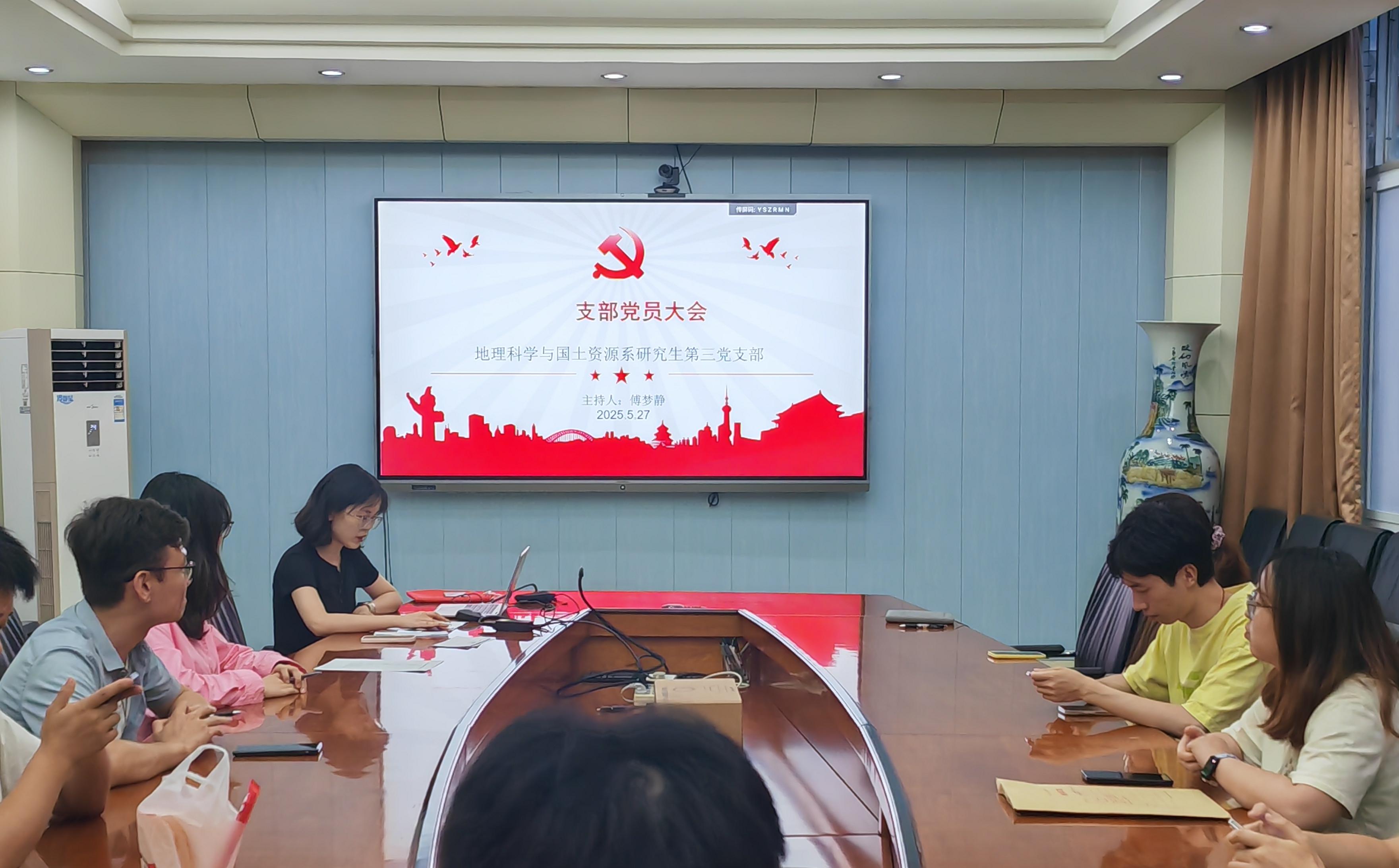 2025年5月27日19:00,地理科学与国土资源系研究生第三党支部于学院301会议室召开转正大会、预备党员接收大会。本次会议由支部书记傅梦静同志主持。