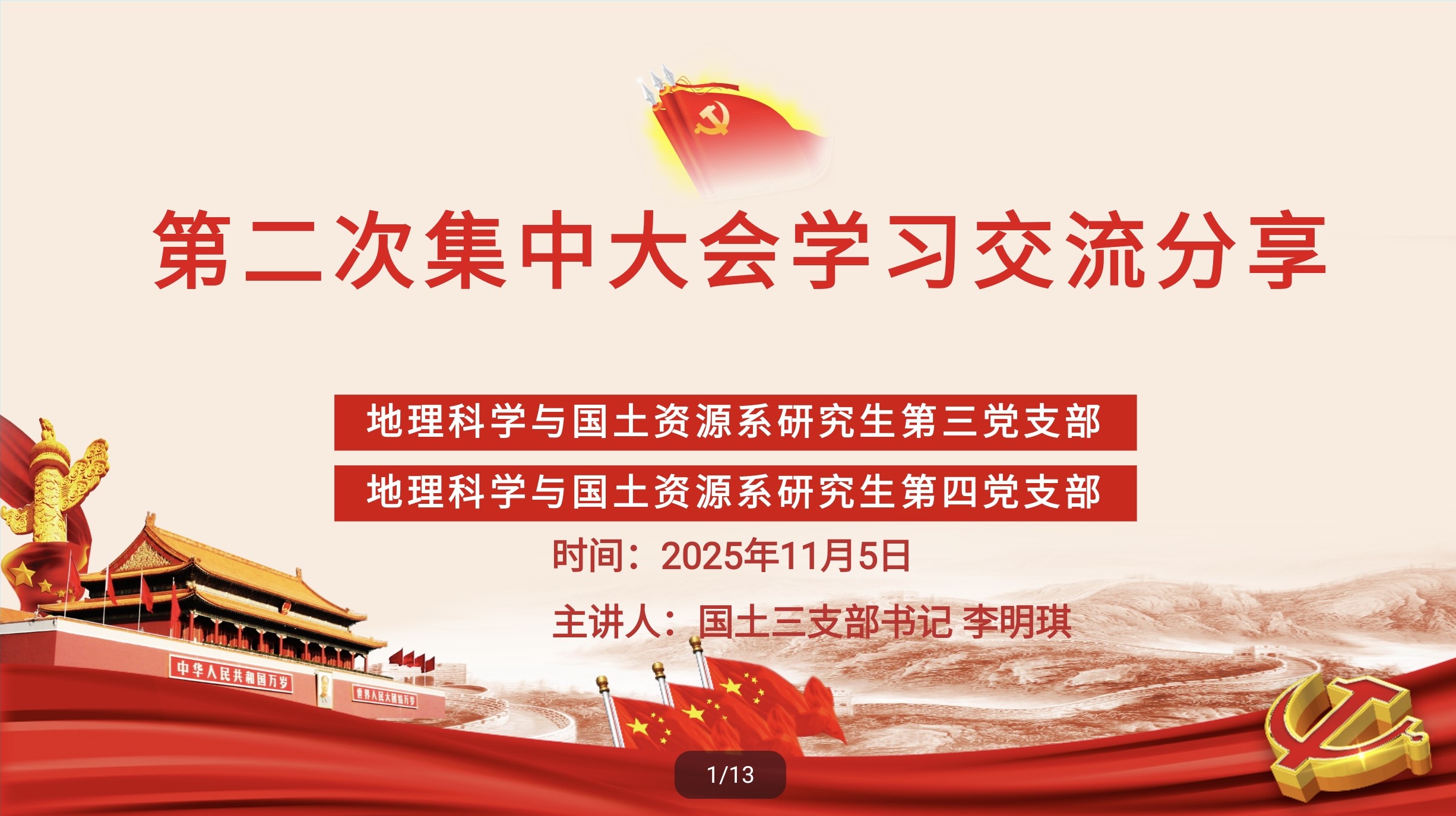 2025年11月5日20:00,地理科学与国土资源系研究生第四党支部联合地理科学与国土资源系研究生第三党支部于线上召开十一月主题党日活动。本次会议由研究生第三党支部书记李明琪同志主持。依据91沈先生