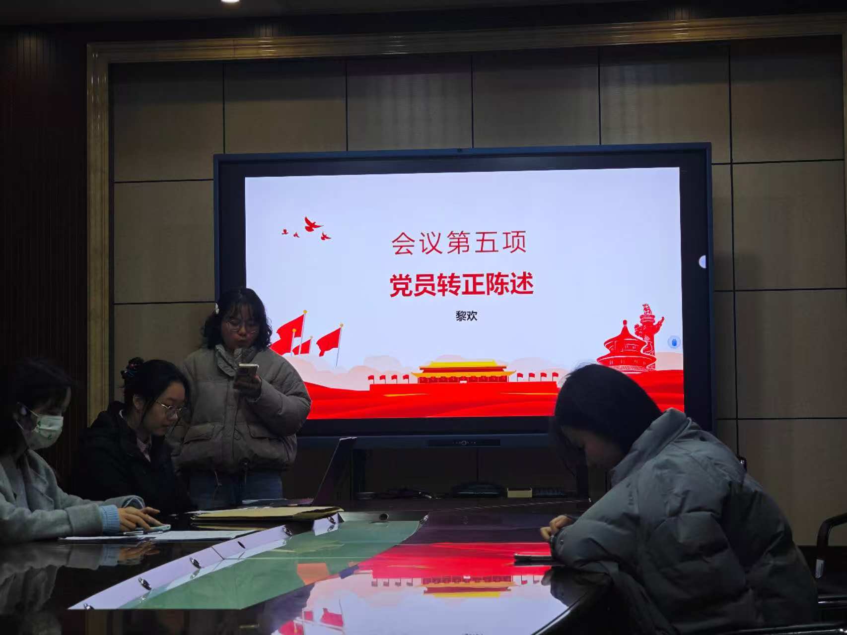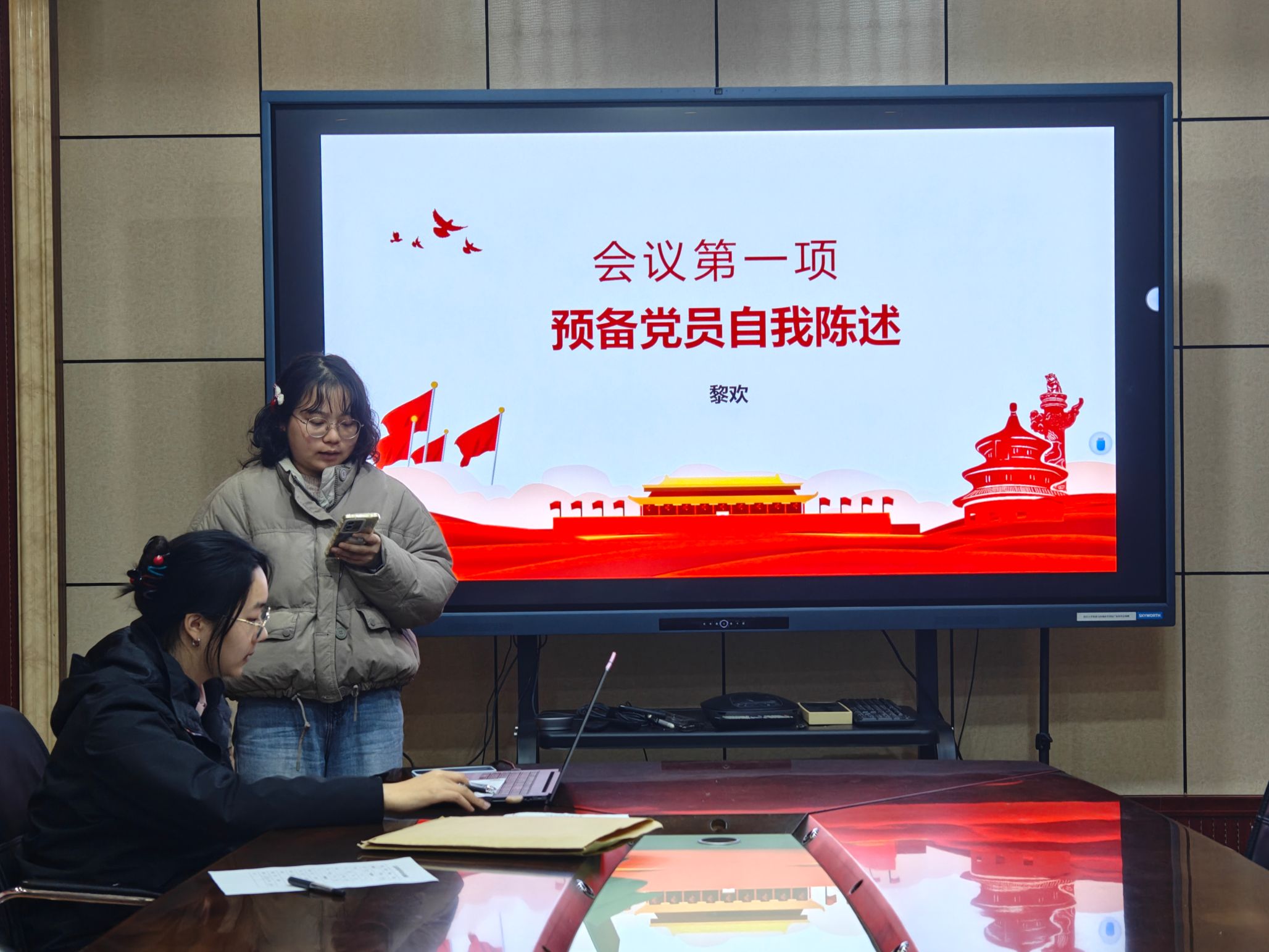 会议第五项,黎欢、王馨茹同志表态。黎欢同志表态,将以正式党员身份严格要求自己,深耕理论学习、强化责任担当,在实践中践行初心使命,为党组织发展贡献全部力量;王馨茹同志表态,转正后将始终坚守党员信仰,锤炼过硬作风、提升履职能力,以更饱满的热情投身工作,不负党组织的信任与培养。