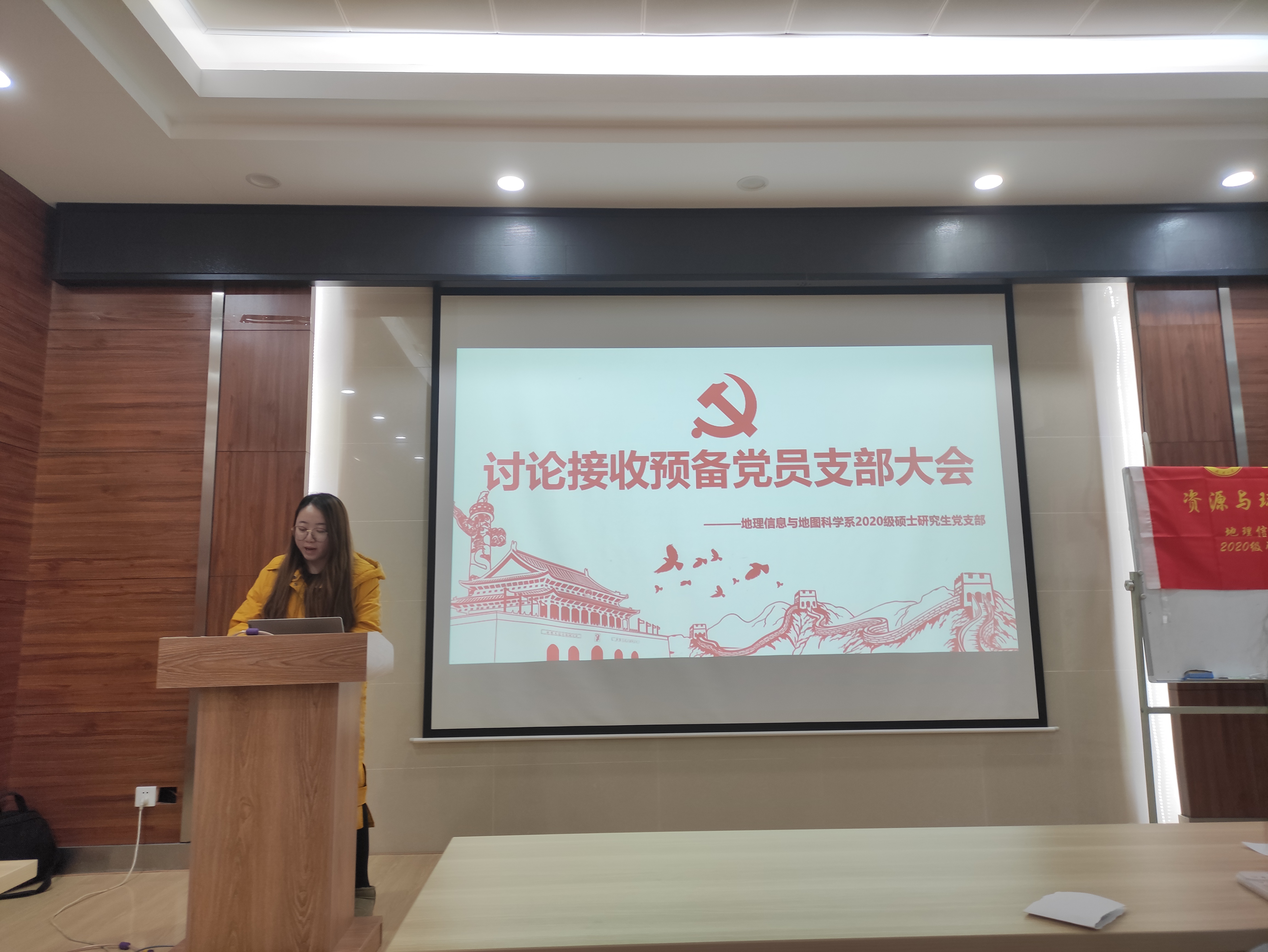 2021年1月13日周三下午四点,地理信息与地图科学系2020级硕士研究生党支部讨论接收预备党员支部大会暨“四史”学习教育主题党日活动于电脑城429召开,会议讨论了发展对象刘之林同志的入党问题。本次会议由支部书记包雨睿同志主持,本次会议应到正式党员14人;实到正式党员12人,请假2人。此外,发展对象也参与了此次会议。