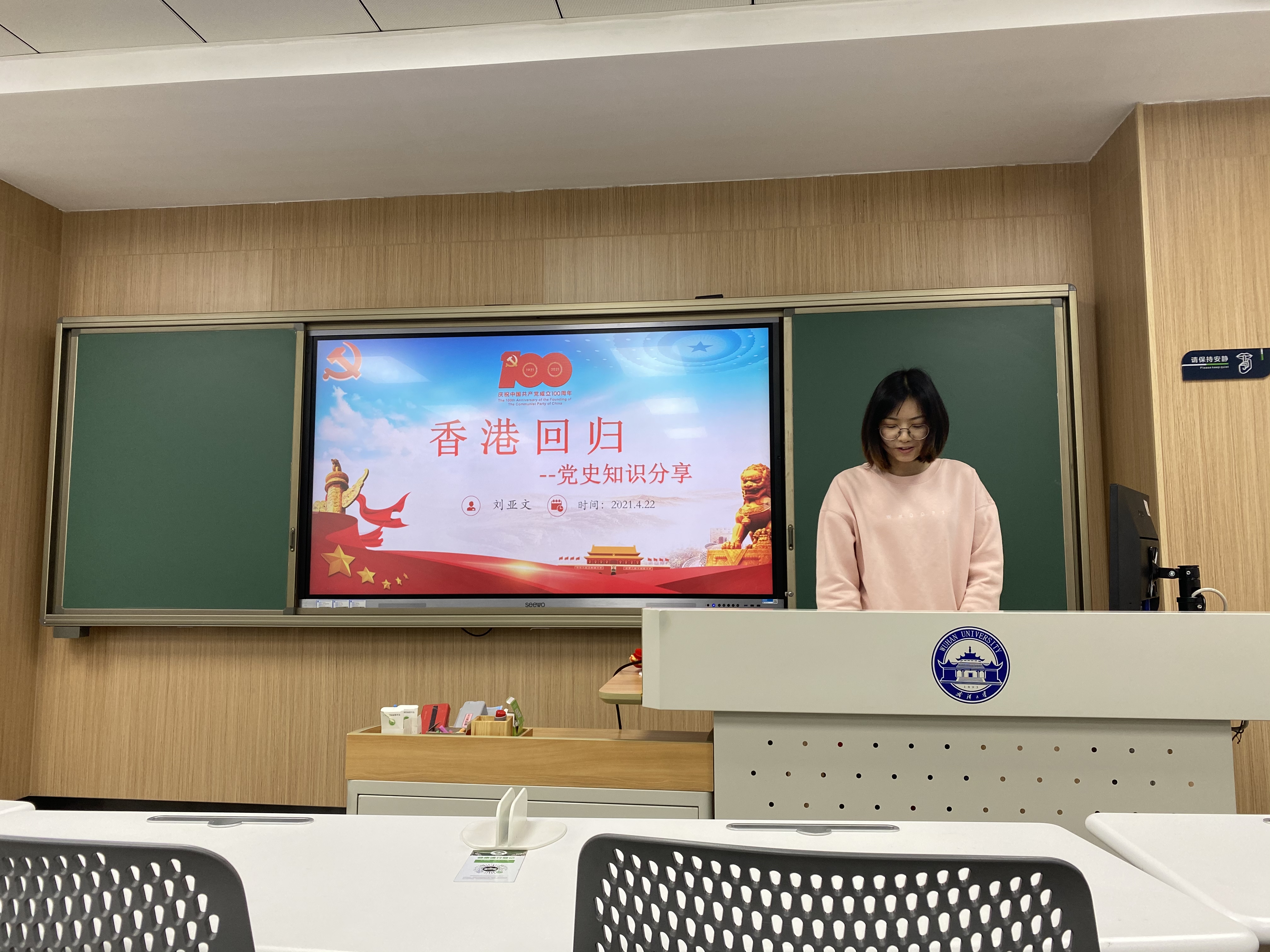 学习习近平新时代中国特色社会主义思想博士生宣讲团讲师邓乐乐和李禾进行宣讲,其主题分别为“在携手抗疫中构建人类命运共同体”和“大笔写意青山绿水,工笔细描久久为功”。同时,支部10名党员为支部详细讲解了内容丰富、内涵深刻的党史知识。支部26名正式党员以及7名预备党员参与此次党日活动。