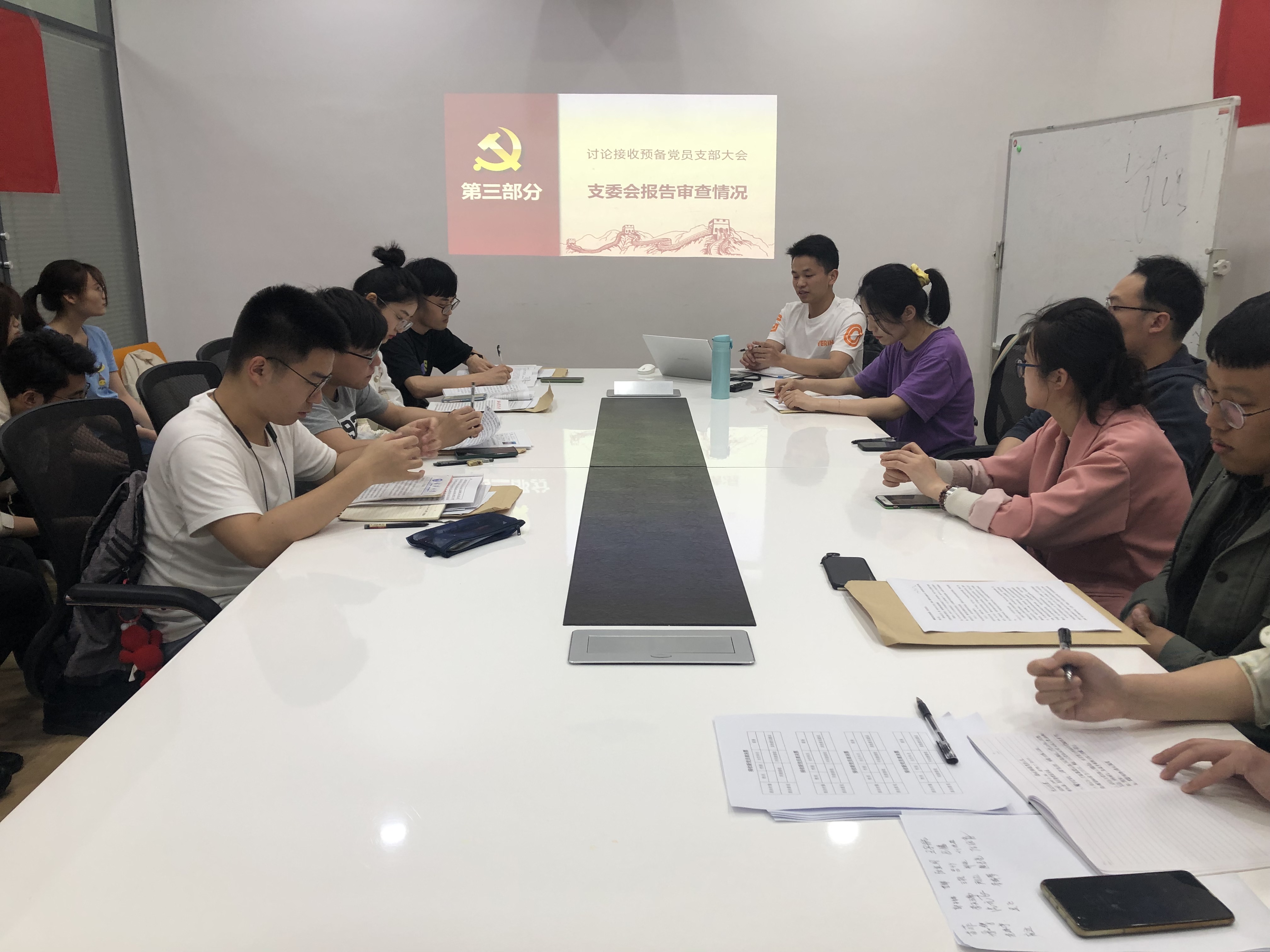 会议第三项:支部书记樊晓辉同志代表支部委员会对郭子铭等6位发展对象的综合考察情况以及政审材料、座谈记录等情况作了汇报,6位发展对象的政审合格。