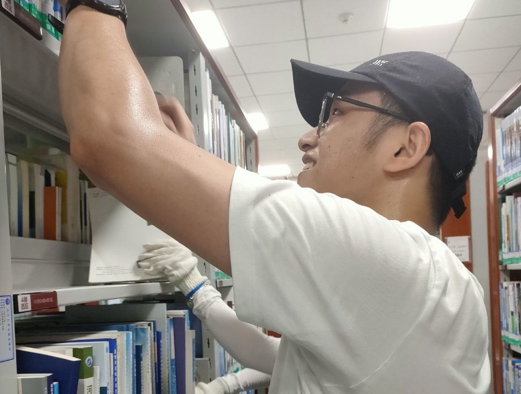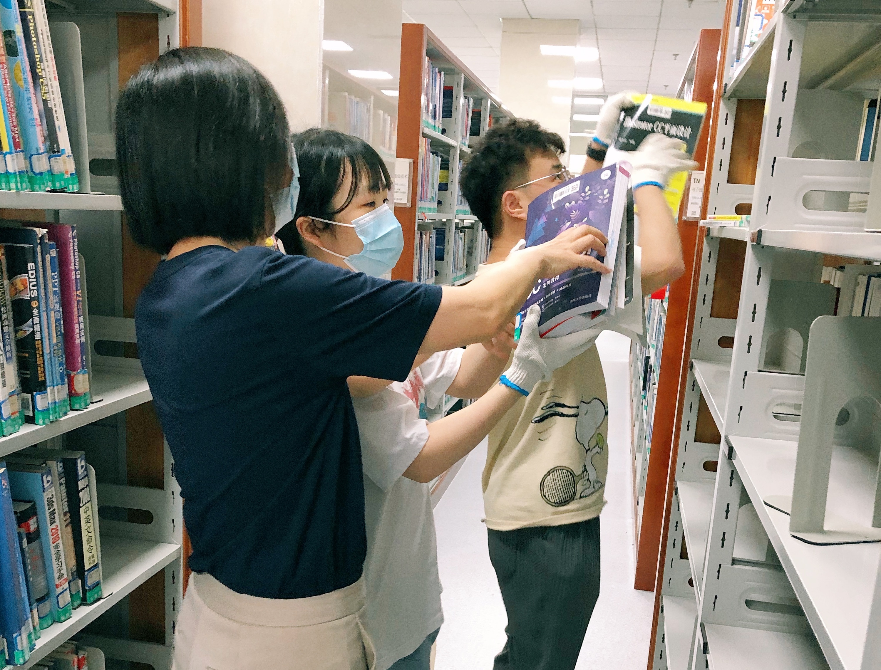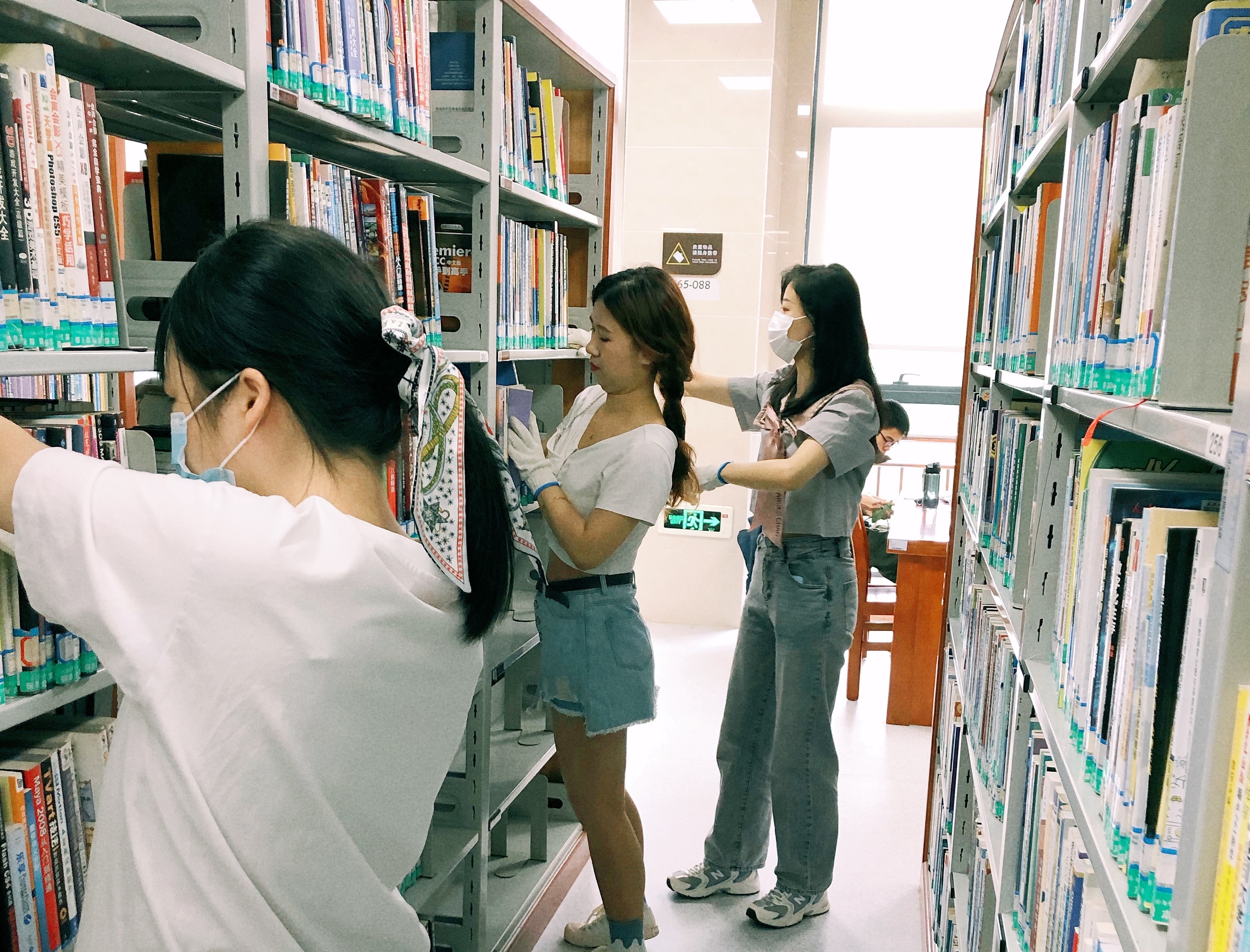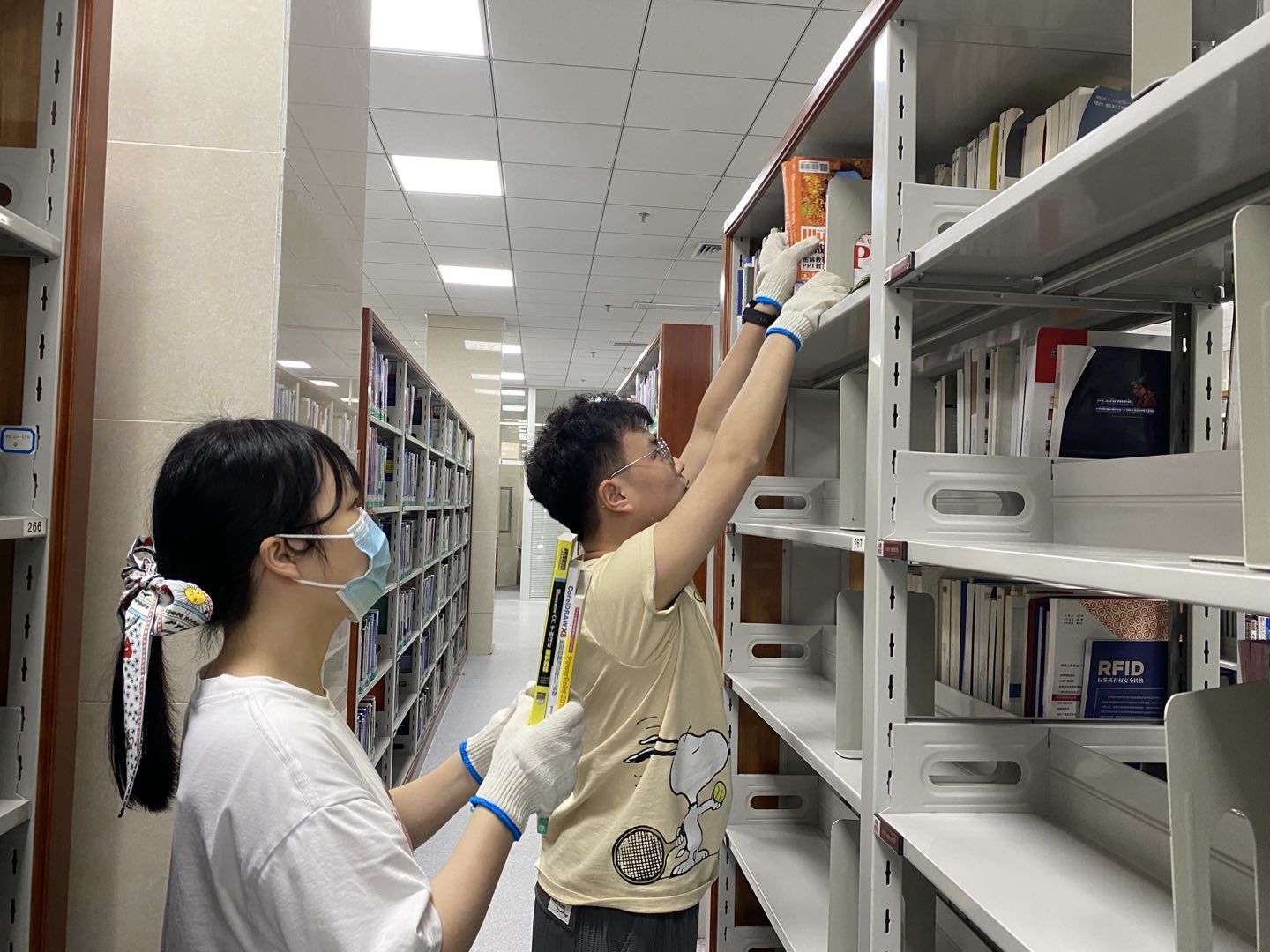 图书馆信息科学分馆一楼总服务台集合。随后乘电梯到达四楼西图书阅览区,16名党员同志分为两组,一组负责图书倒架,另一组负责为座椅贴标签。接下来,图书馆朱老师为大家讲解了操作方法及注意事项,之后各位党员便开始了有条不紊的实践活动。