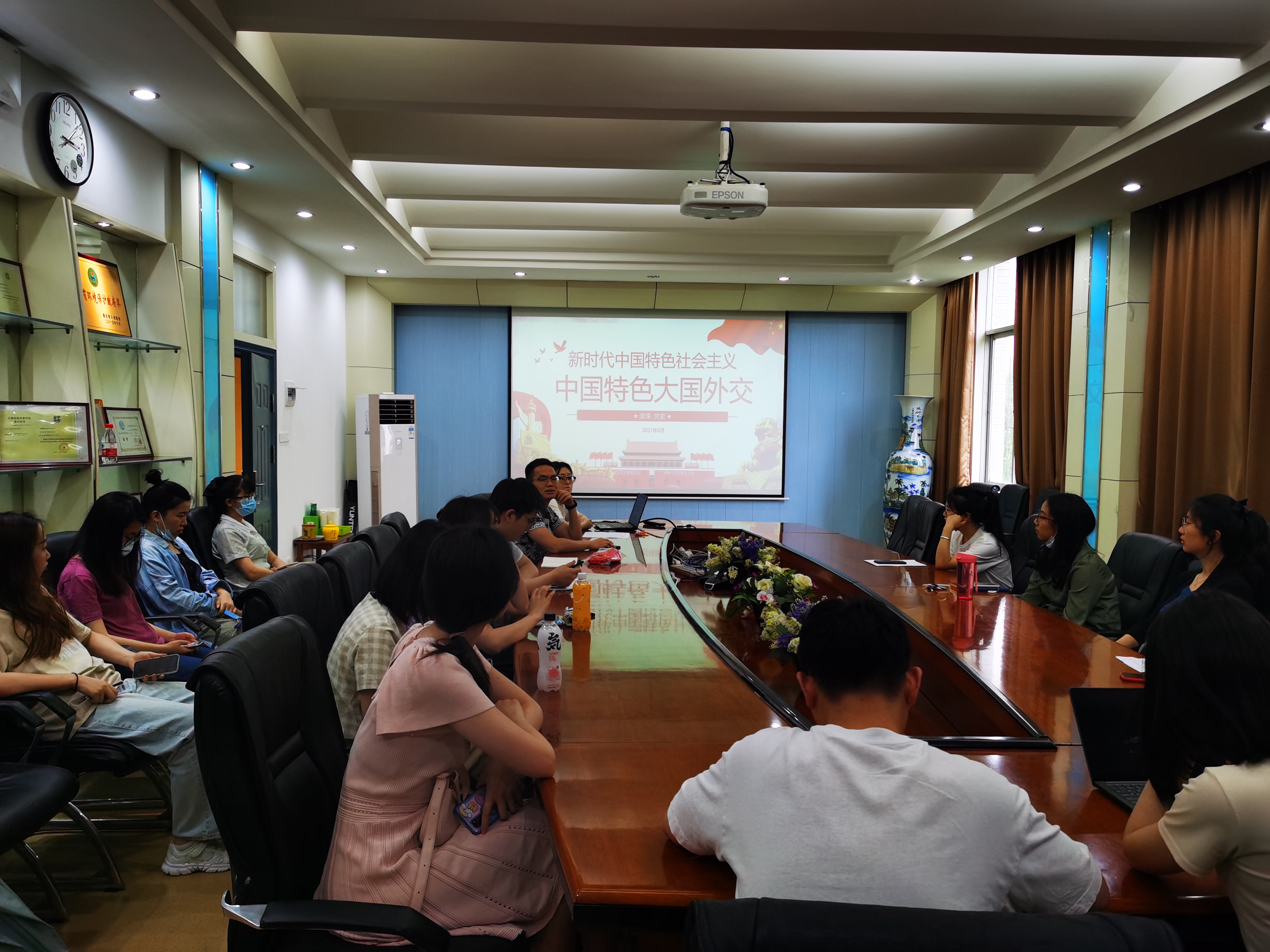会议第一项,由党支部组织委员刘娟同学为大家带来了以“新时代中国特色社会主义之中国特色大国外交”为主题的党课学习分享。刘娟同学介绍到,中国特色大国外交理念是与时俱进不断发展的有中国特色的大国外交新战略。中国特色大国外交理念要求我们在总结实践经验的基础上,丰富和发展对外工作理念,使我国对外工作有鲜明的中国特色、中国风格、中国气派。紧接着,张静娴同学和曹诗翊同学分别分享了自己的学习心得体会。