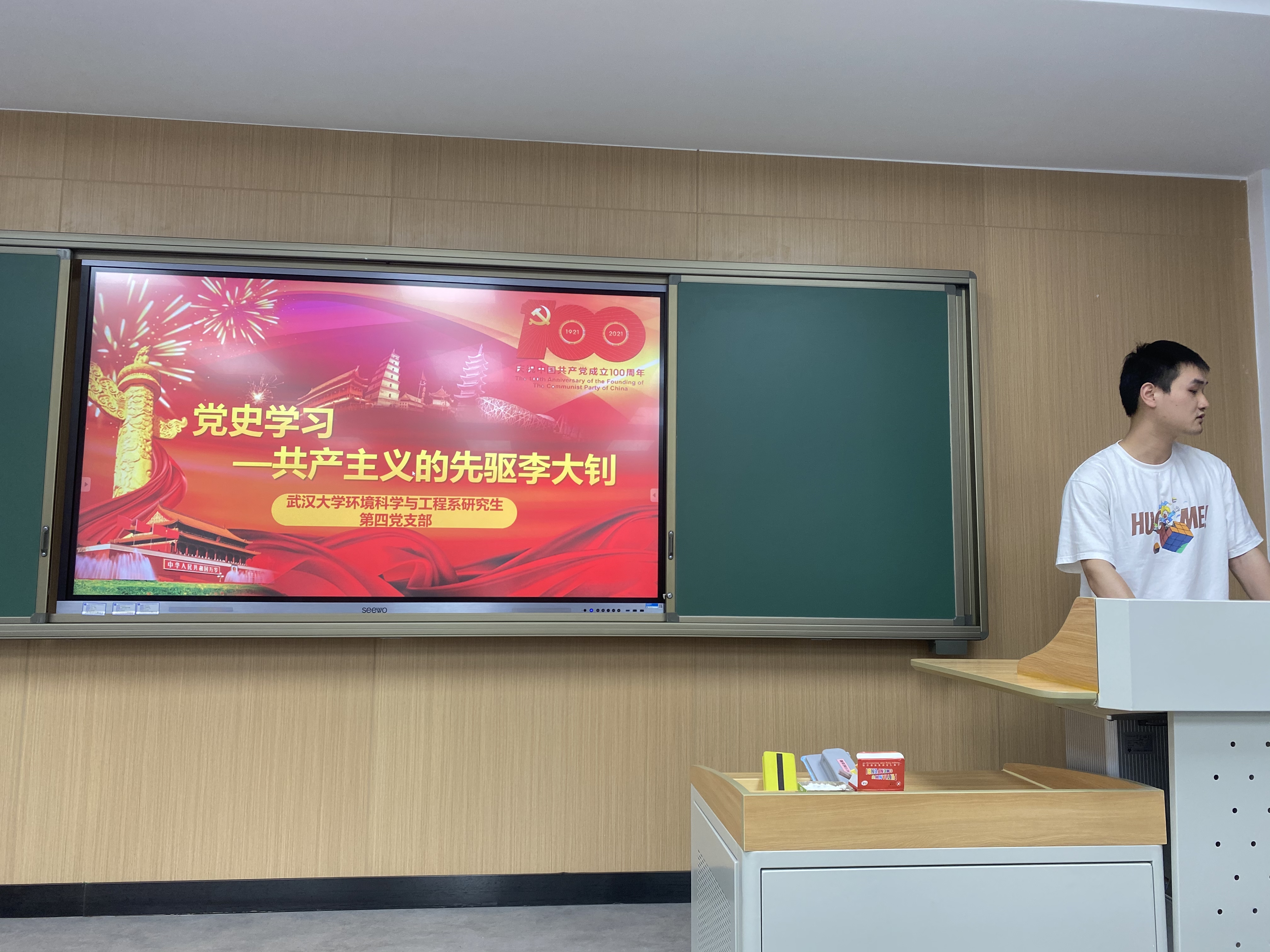“党史学习教育”动员大会学习安排,环境科学与工程系第四党支部开展“百年辉煌史,礼赞新时代”珞珈青年系列学习活动第二弹。6月22日,支部在工学部主教220教室举行会议,党支部书记王豪杰同志主持了此次会议。