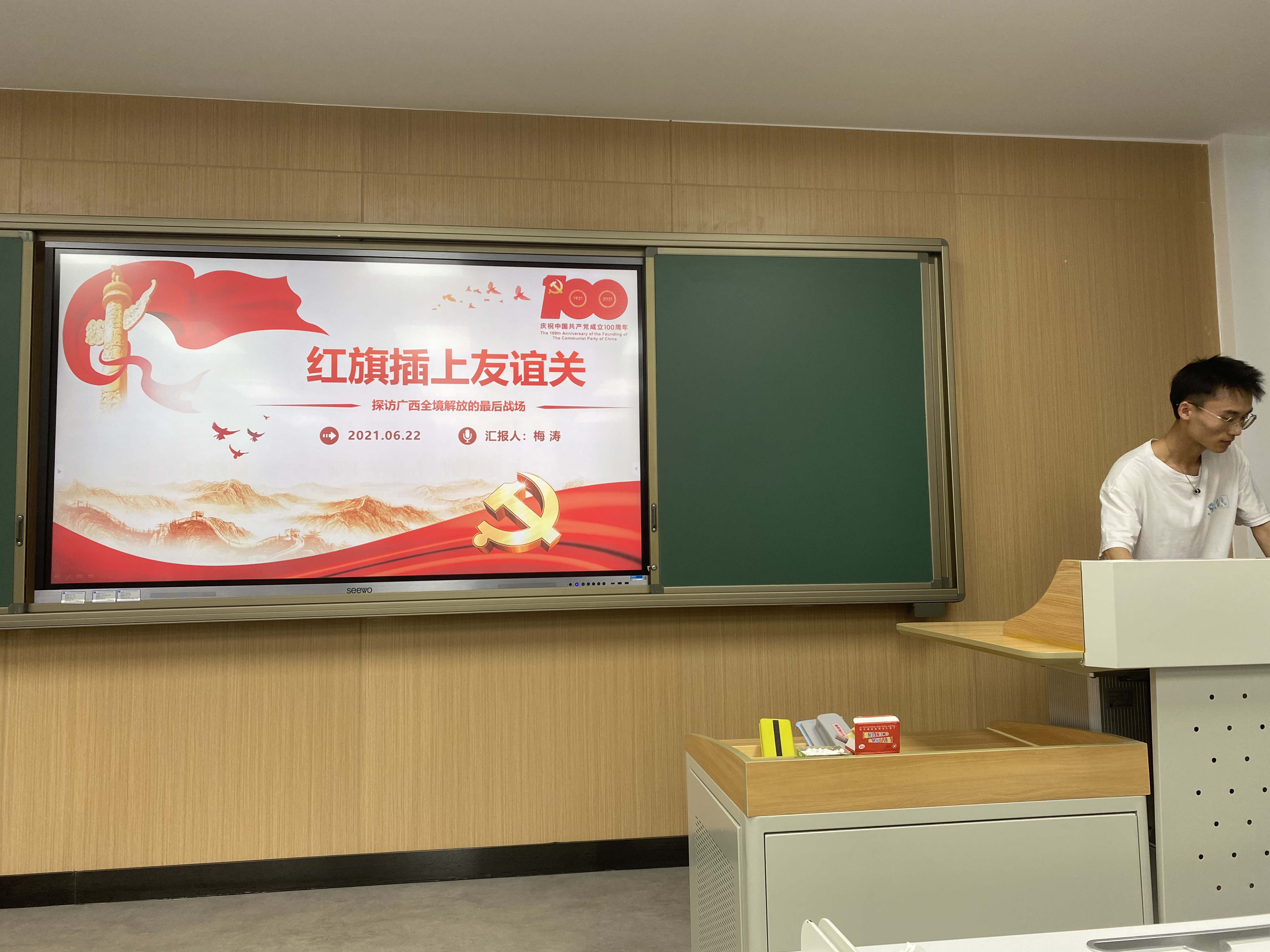 随后,进行了支部党员讲党史活动,分别有八名党员同志分享了自己学习的党史知识:从“十四五”规划看中国智慧和力量、澳门回归、中国梦、皖南事变、太行精神、共产主义的先驱李大钊、“人工天河”红旗渠、红旗插上友谊关。党员同志们在分享了自己学习的党史知识后,又讲述了自己从中所学到的感悟,让在做的各位党员同志受益匪浅。