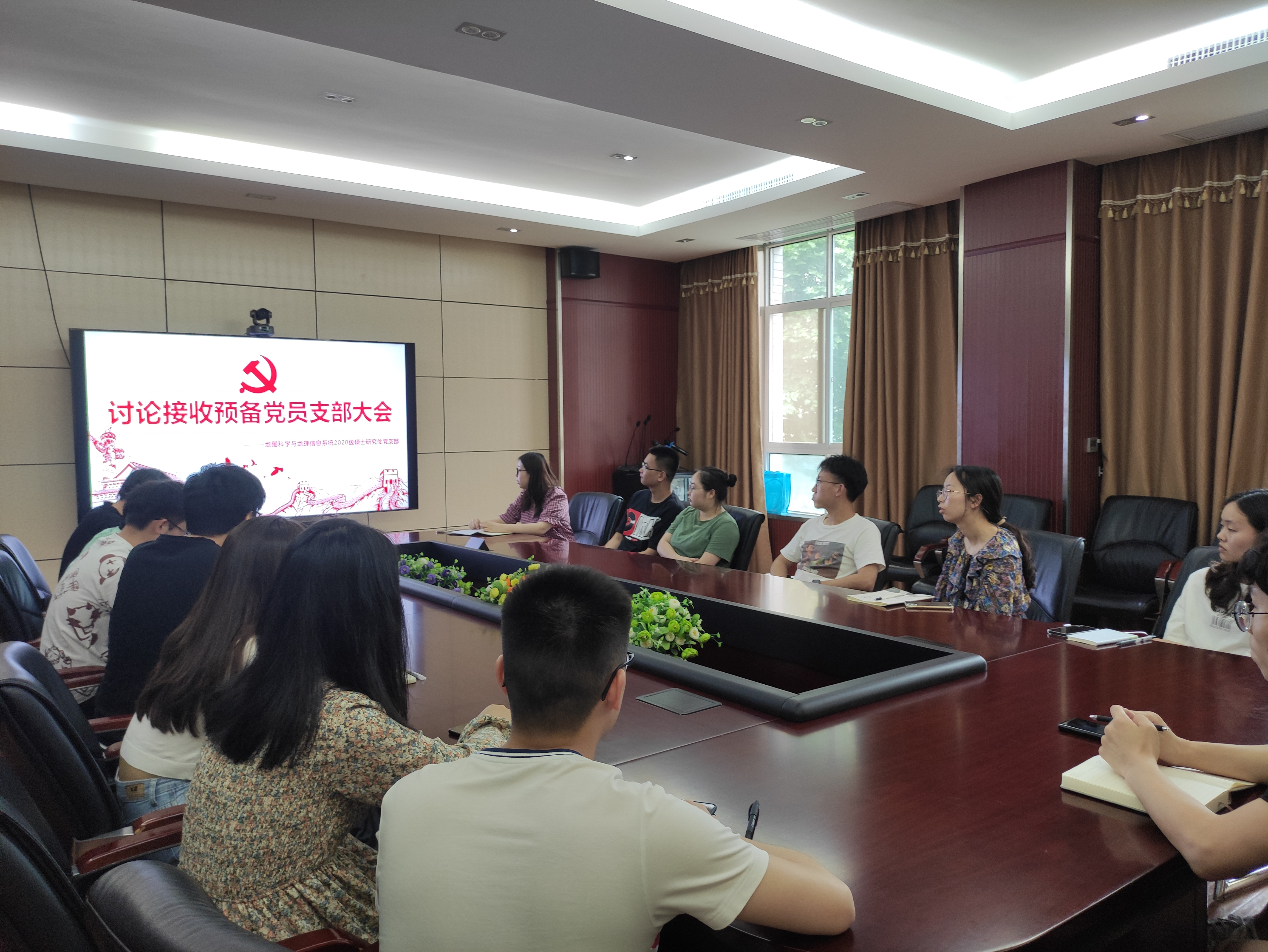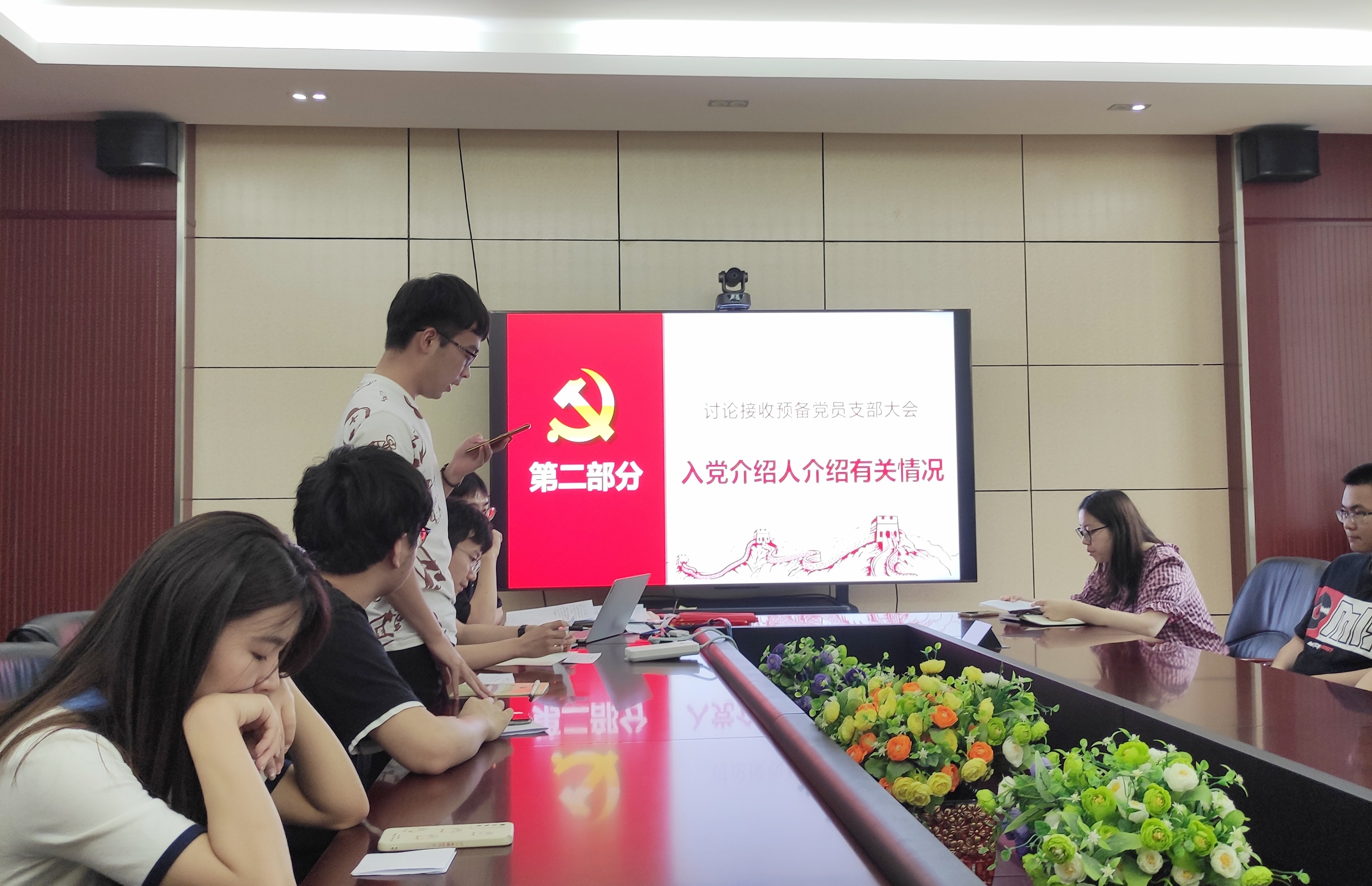 2021年6月9日周三下午四点,地理信息与地图科学系2020级硕士研究生党支部讨论接收预备党员支部大会暨党史学习教育主题党日活动于院办320会议室召开,会议讨论了发展对象党蕊蓉、郭英琦同志的入党问题。本次会议由支部副书记辛成同志主持,本次会议应到正式党员14人,预备党员4人;实到正式党员11人,预备党员4人。