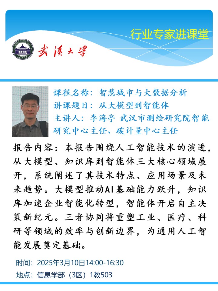 《智慧城市与大数据分析》本科课程专家讲课:从大模型到智能体