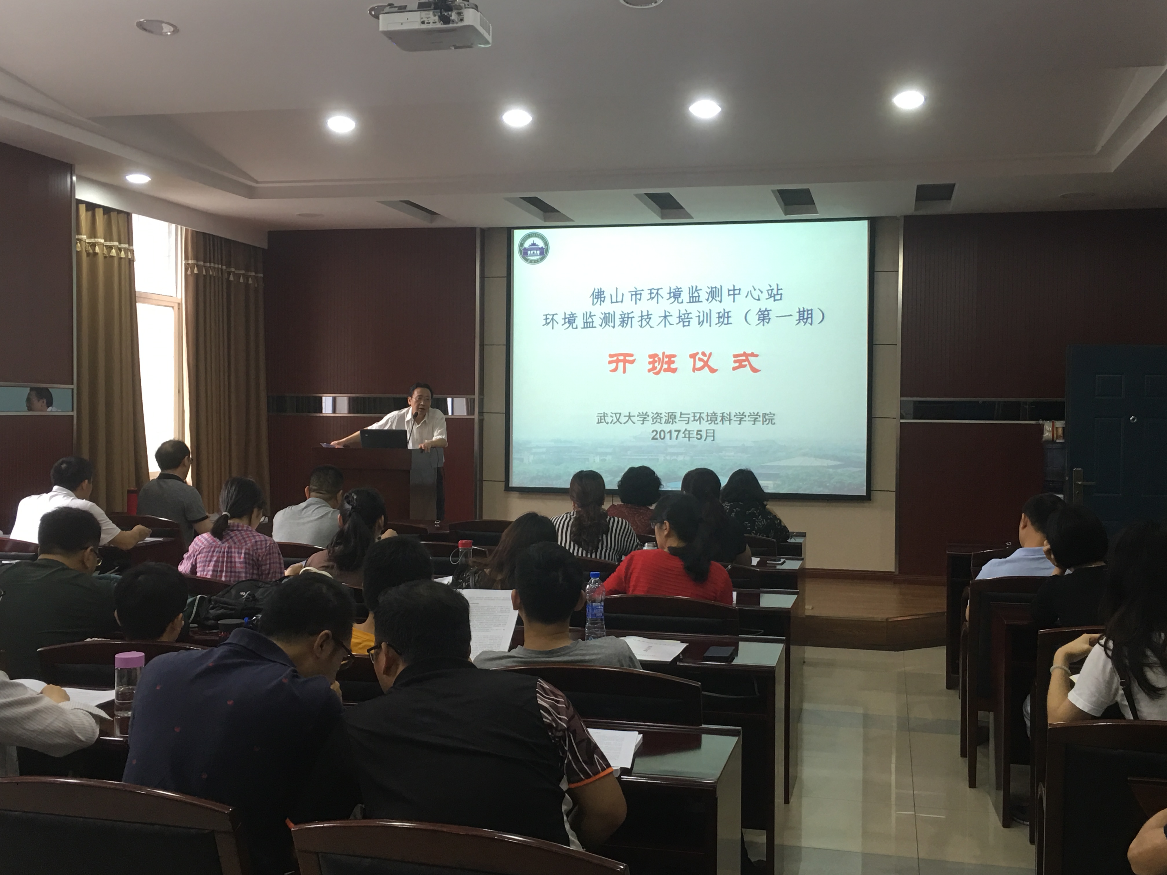 本次培训班是根据广东省佛山市环境监测中心站的需求,进行沟通和商定培训方案,并结合学院的专业优势,主要包含环境监测技术与仪器分析、环境数据处理与数据挖掘、环境质量综合分析、卫星遥感解译技术及在环境监测中的应用、环保法律法规以及两高司法解释以及在新形势下监测人员如何加强自我保护意识等专题。学员学习期间参观学习了湖北省环境监测站、武汉天虹环保产业股份有限公司。学员们认真学习,相互交流,把理论与实践进行有效结合,加强师生之间相互探讨和交流,提升了学员环境监测知识和开拓了视野。