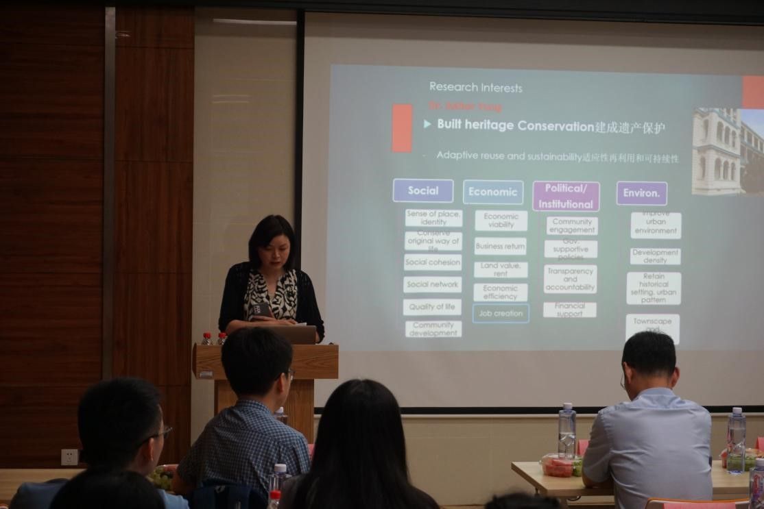 香港理工大学陈汉云教授介绍了“城市可持续发展政策”团队在城市土地利用、老龄化与居民福祉、城市更新和遗产保护等领域的研究成果。孙羿副教授、容晓君副教授分别聚焦老年友好型城市建设、城市遗产保护主题进行了精彩分享。
