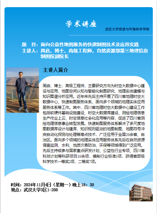 11月4日 周启高工:面向公益性地图服务的快速制图技术及应用实践