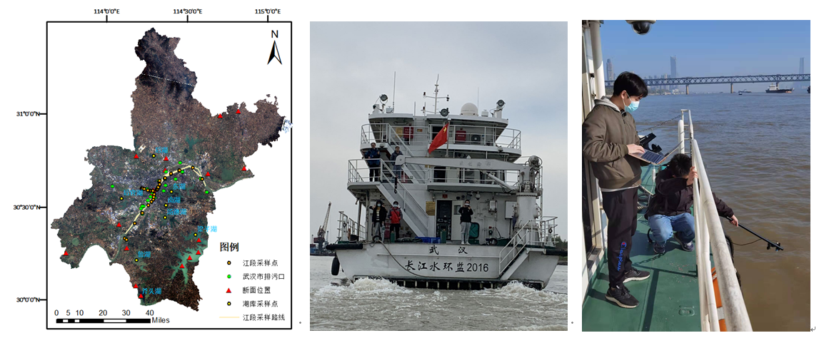针对江湖水环境监测,基于我国最大、最先进的内河水环境监测船“水环监2016”,在长江干流武汉江段及汉江支流进行巡测,通过水质在线监测设备实现每小时39个水质参数的近实时获取,监测参数包括水温、PH、透明度、浊度、叶绿素a、氨氮、CDOM等;在武汉市东湖、后湖、梁子湖、汤逊湖等重点湖库进行人工水质采样,并利用手持式光谱仪采集水面近端光谱,对排污口、工厂以及水色、气味异常区域执行无人机应急监测飞行任务。