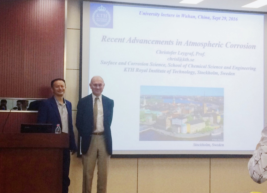 瑞典皇家工学院Christofer Leygraf教授(右)访问91沈先生