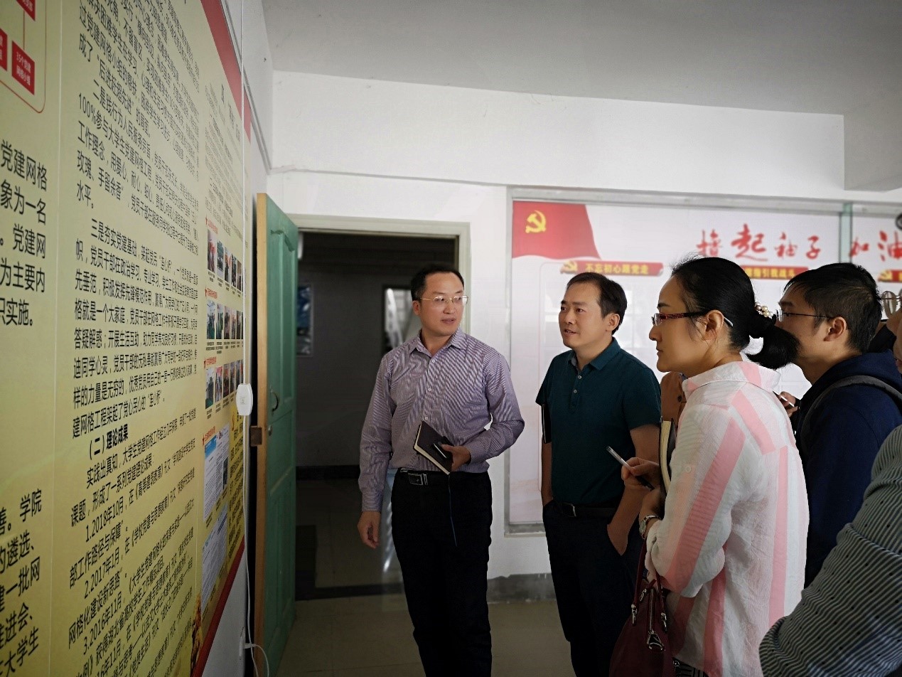 学院代表跟随土建学院学工办主任余娟、团委书记刘光明,参观了后保部与土建学院共建的工学部学生宿舍十六栋,通过实地学习,浏览宿舍文化长廊、党员之家、团员之家、“心晴”工作室等思想政治教育实绩,感受了思想政治教育进宿舍的成效。在“党员之家”,双方进行了深入的交流探讨。