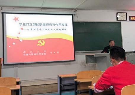 在集中培训中,学院党委书记刘兴国以“学生党支部的职责任务与作用发挥”为题,对学生党支部及支委会的职责定位、主要任务、工作方法等作了深入讲解;学院组织员易真老师为大家讲解了党员发展工作要求及流程;2016级环境类博士生党支部书记蒋惠梦同学和2017级土地资源管理硕士生党支部书记龚晨同学则从抓好支部建设角度分享了工作经验和体会。