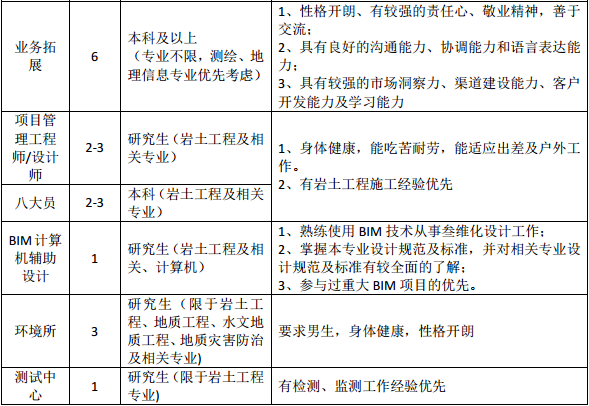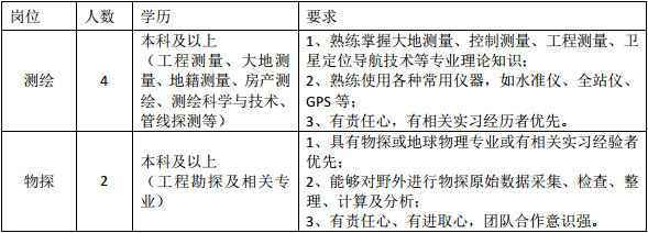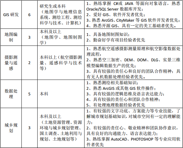 主要专业公司之一,现有员工300余人,注册测绘师30余人,工程师以上职称50余人;是国内测绘资质最齐全的单位之一;已成为国内知名的测绘地理信息服务企业之一。为加强公司业务拓展、生产管理和技术研发能力,我司拟于2017年2月全面启动高校招聘活动,计划招聘测绘工程、地理信息系统、地图编制、工程物探、摄影测量与遥感、土地资源管理等专业高校应届毕业生31人。