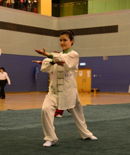 图为2012级学生晏思琪在六字诀的比赛中