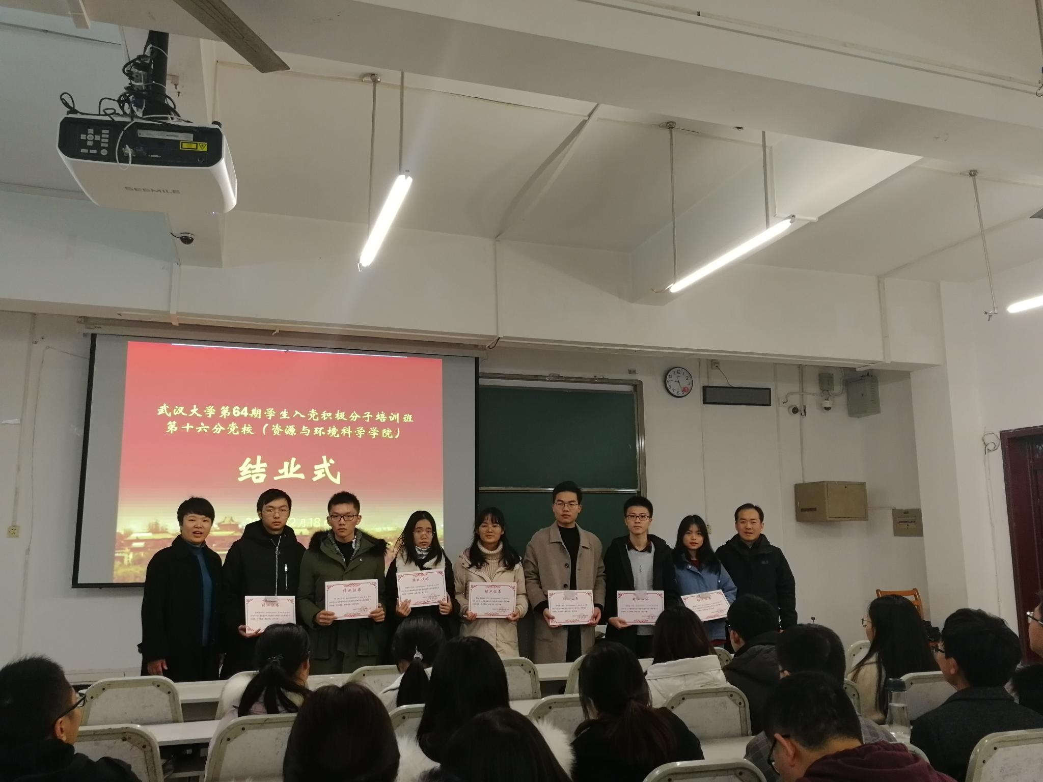 )培训班结业仪式在信息学部一教301教室举行。学校党校督导员杨裕利,分党校校长、学院党委书记刘兴国,分党校副校长、学院党委副书记冯丹,学院党委副书记雷起宏,学院辅导员马丽华、王安琪等出席结业式。结业式由学院组织员、培训班班主任易真主持。