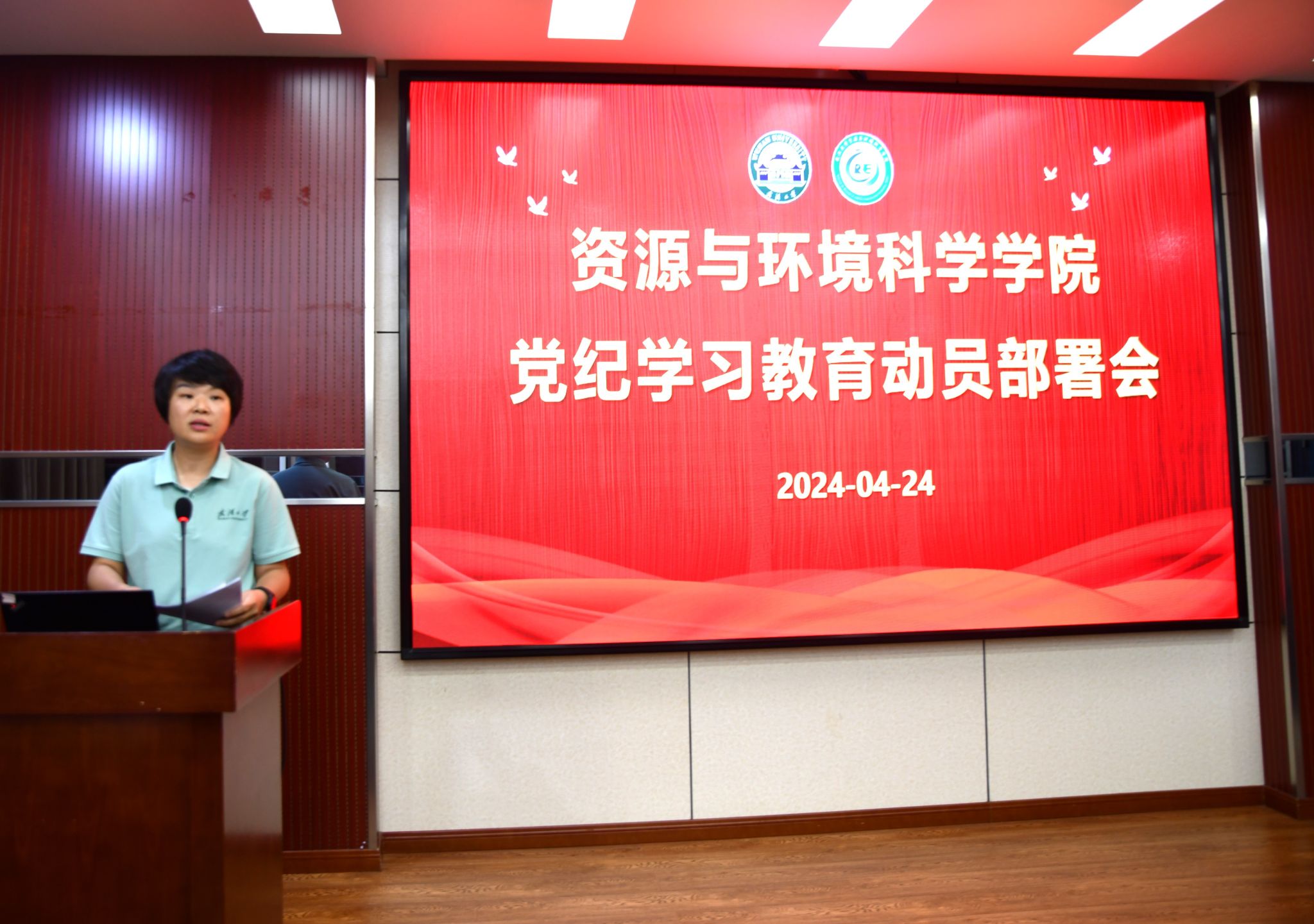 4月24日下午,学院在220报告厅召开党纪学习教育动员部署会。会议传达了学校党纪学习教育部署会精神,布置了学院党纪学习教育有关工作安排。学院领导班子成员、党委委员,各党支部书记和纪检委员参加会议。会议由院党委书记刘兴国主持。