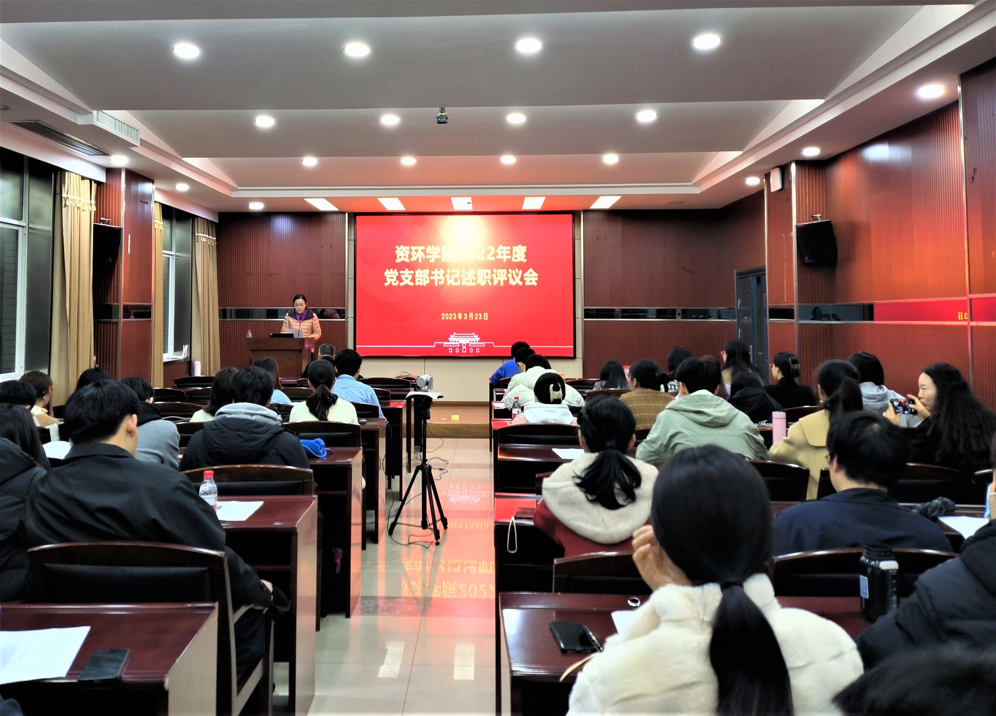 3月23日,资环学院举行了2022年度党支部书记述职评议考核会。述职评议考核采取教职工党支部和学生党支部分组进行,学院5名在职教工党支部书记和22名学生党支部书记进行了现场述职,退休教工党支部书记进行了书面述职。学院党委委员、专职组织员和有关辅导员、各党支部委员及党员代表与会。