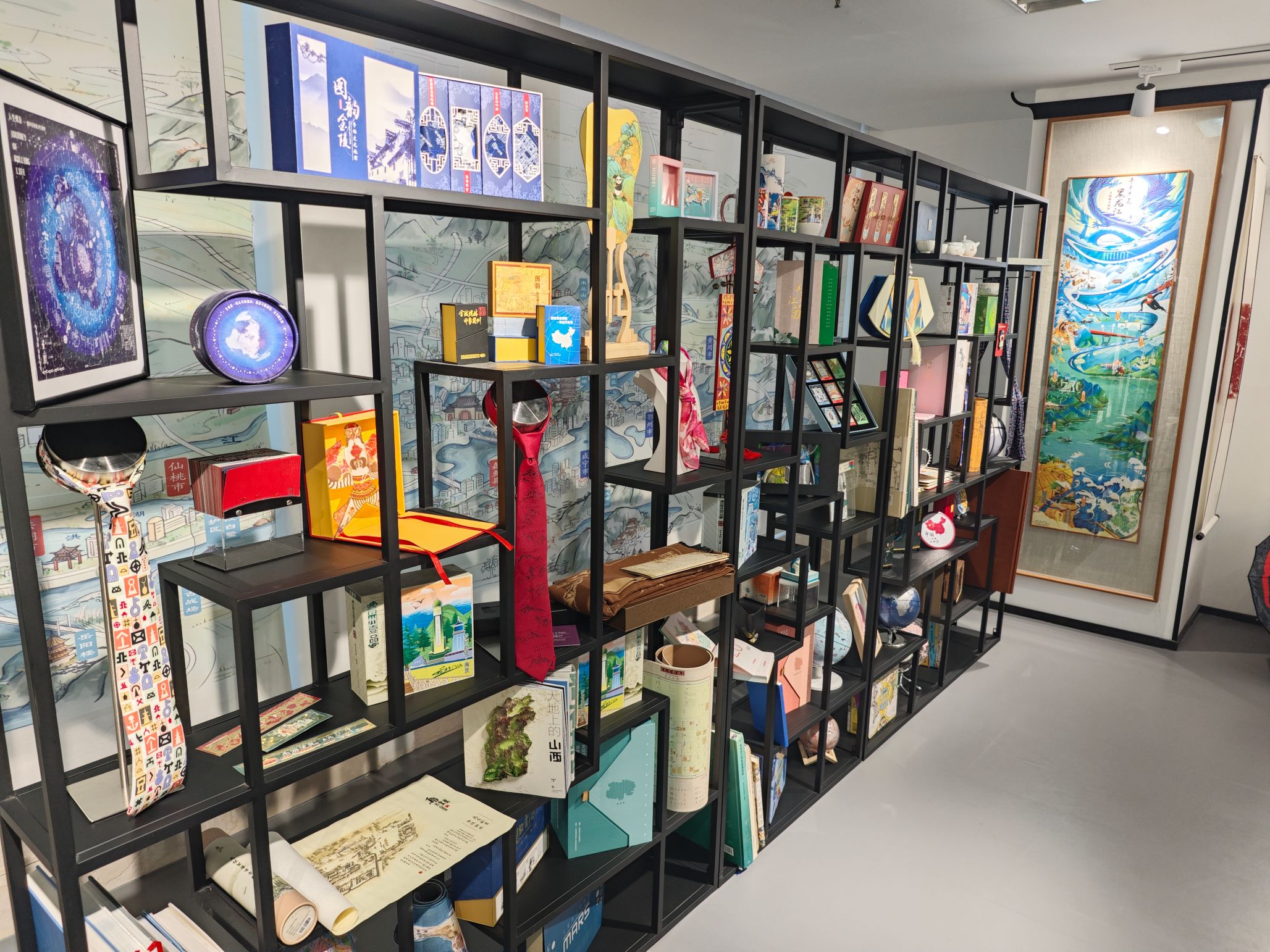 在“地图成果2号厅”,青花瓷地图、剪纸地图等跨界作品令人耳目一新。这些文创产品不仅是地方文化的“立体名片”,更成为推动文化输出的创新载体。少儿手绘区的童趣地图则激发了同学们对专业价值的思考——如何将科学严谨与艺术创意结合,打造兼具实用性与传播力的地图作品。
