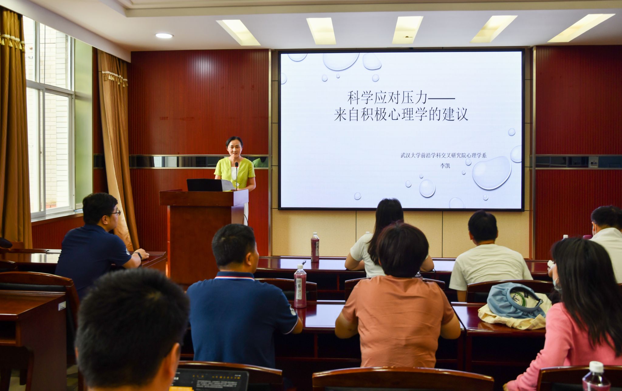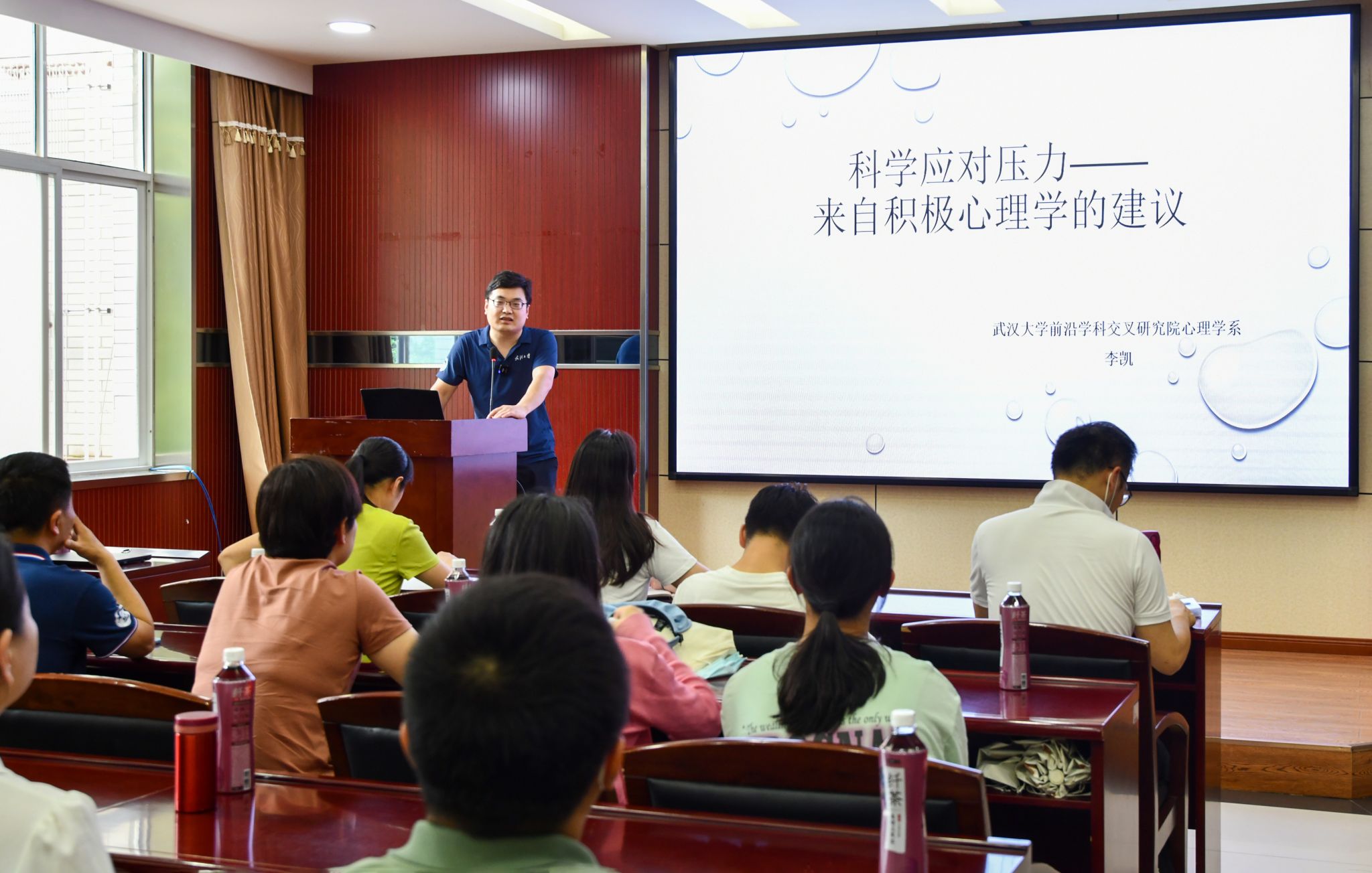 为促进我校教职工身心健康,校工会于今年5-6月主办了教职工心理健康知识系列讲座。讲座共七场,资环学院承办了其中一场。5月23日下午,在资环学院220报告厅,前沿学科交叉研究院的李凯老师带来了“压力应对的积极心理学”这场讲座,来自全校多个单位的教职工参加了讲座。讲座由资环学院党委副书记、工会主席马丽华老师主持。