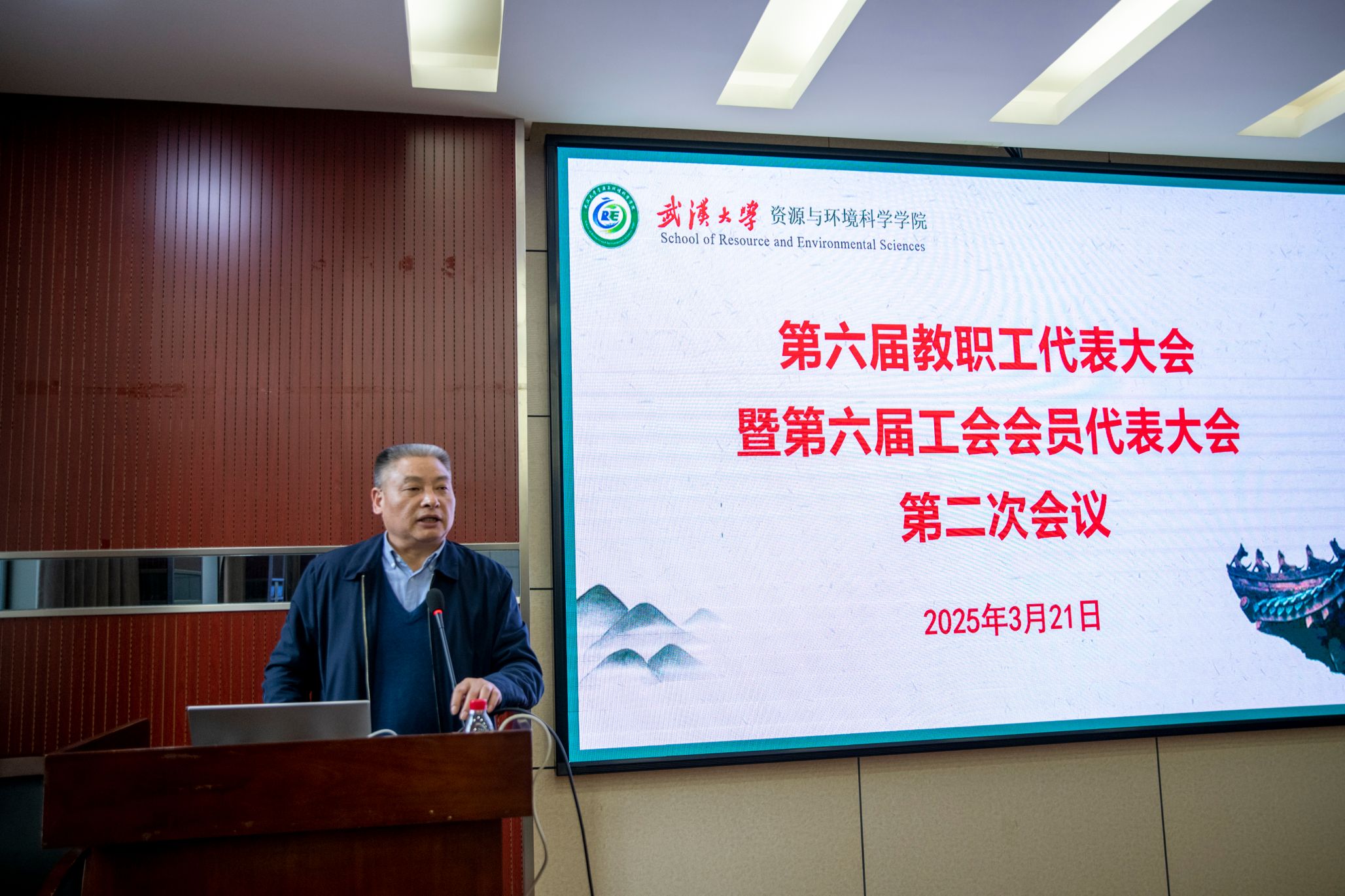 大会上,院长沈焕锋代表学院作年度工作报告。沈焕锋院长表示,过去的一年,学院始终坚持以立德树人为根本任务,紧紧围绕“双一流”建设目标,全面推进各项事业高质量发展。沈院长系统回顾了2024年学院在学科建设、人才培养、队伍建设、科研创新、管理服务等重点领域取得的显著成效,同时客观分析了当前工作中存在的短板与不足,也反馈了学院上一次“两代会”中代表们提出建议的落实情况,并就2025年学院的重点工作任务进行了全面部署和科学谋划。