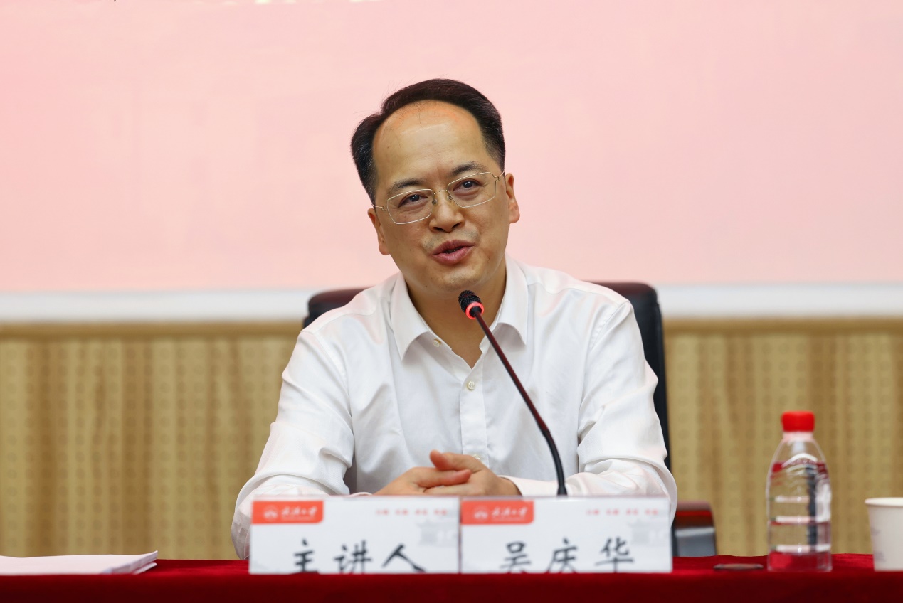报告会上,吴庆华以《建设先行区奋进新征程——深入学习贯彻习近平总书记考察湖北重要讲话精神和省第十二次党代会报告精神》为题,深入阐述了习近平总书记考察湖北重要讲话精神的重大意义和丰富内涵,从方法论的角度深刻阐明了省第十二次党代会报告的思维方法和理论逻辑。吴庆华紧扣省第十二次党代会报告主题,选取统筹发展和安全、推进区域协调发展和新型城镇化、实施强县工程等关键点进行重点解读,系统分析了湖北立足新发展阶段,贯彻新发展理念,努力建设全国构建新发展格局先行区的目标定位和路径举措。宣讲报告主题鲜明、视野开阔、分析透彻,具有很强的思想性、理论性和指导性。