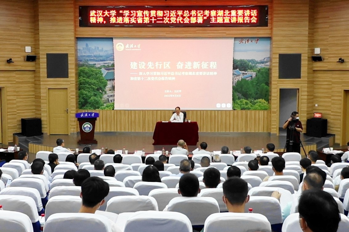党委把学习宣传贯彻习近平总书记考察湖北重要讲话精神和省第十二次党代会精神作为重要政治任务,第一时间进行全校范围传达学习,并通过广泛开展宣讲活动、深入开展研究阐释、精心策划新闻宣传,在全校迅速掀起学习宣传热潮。下一步,学校将进一步持续深入学习贯彻习近平总书记考察湖北重要讲话和省第十二次党代会精神,进一步引导学校党员干部和师生把思想和行动统一到习近平总书记重要讲话精神上来,把力量凝聚到落实省第十二次党代会确定的各项目标任务上来,在学校党的建设、人才强校、学科发展、人才培养、创新服务等方面持续深入推进,在服务湖北“建设全国构建新发展格局先行区”战略中做出武大贡献,以优异成绩迎接党的二十大胜利召开。