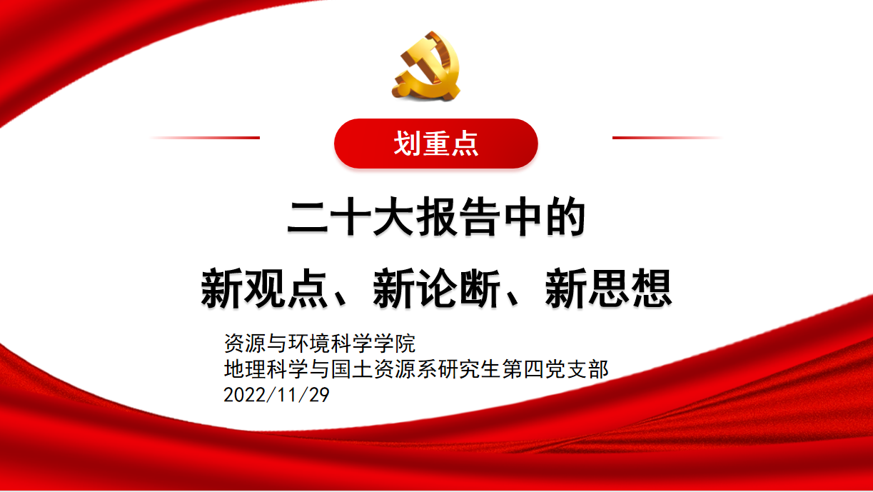 为深入学习贯彻落实党的二十大精神,激励全体党员同志积极创先争优,发挥党员示范引领作用,增强党组织的凝聚力和战斗力,地理科学与国土资源系研究生第四党支部于2022年11月29日下午三点开展了以“二十大报告中的新观点、新论断、新思想”为主题的党日活动。受疫情封控影响,本次会议在线上召开,由党支部书记周亚娟主持。