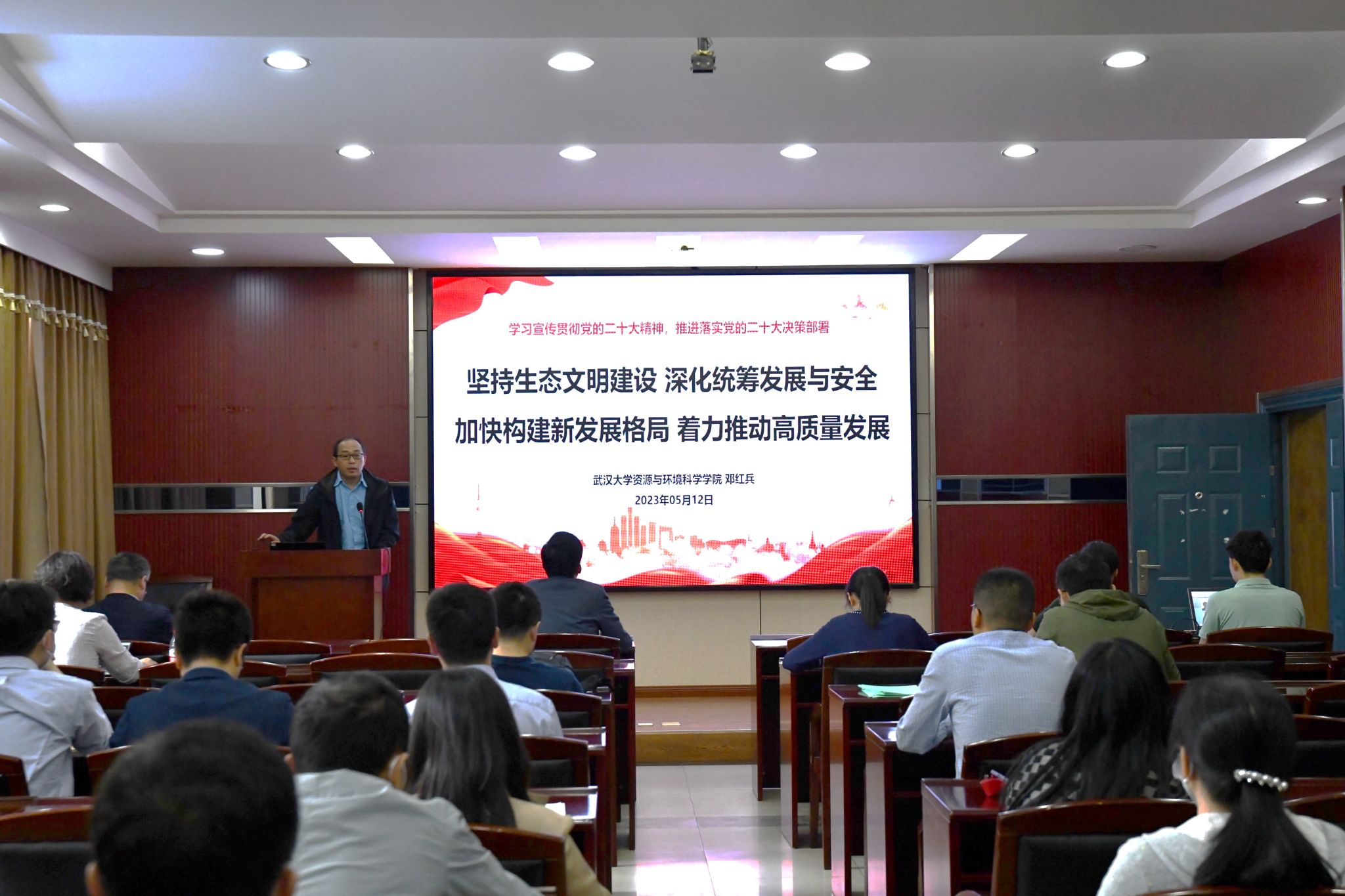 邓红兵教授以“坚持生态文明建设、深化统筹发展与安全,加快构建新发展格局、着力推动高质量发展”为题,对党的二十大精神进行了宣讲,着重分析了新时代生态文明建设取得的历史性成就,就习近平生态文明思想和党的二十大报告对生态文明建设的战略部署进行了解读阐释,并结合科研工作实际分享了如何把握生态文明建设新形势、在构建新发展格局推动高质量发展中建功立业的感想体会。
