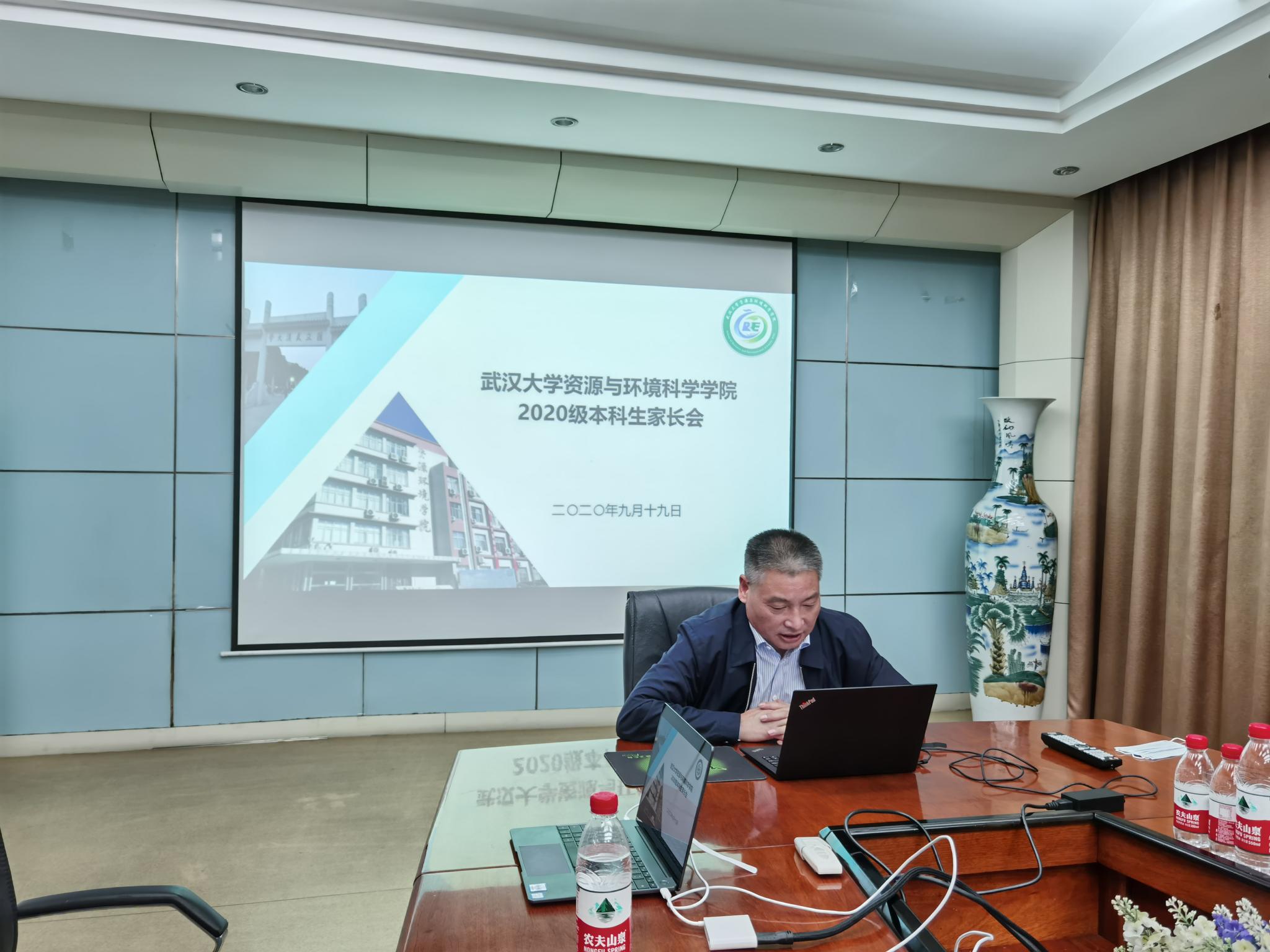 首先由学院党委书记刘兴国致辞。刘书记首先对2020级新生的到来表示了欢迎和祝贺,接着,刘书记就学院的历史发展、学科设置、师资力量、人才培养以及科研成果和所获荣誉等做了全面的介绍,让各位家长对资环学院有了更加立体和直观的认识