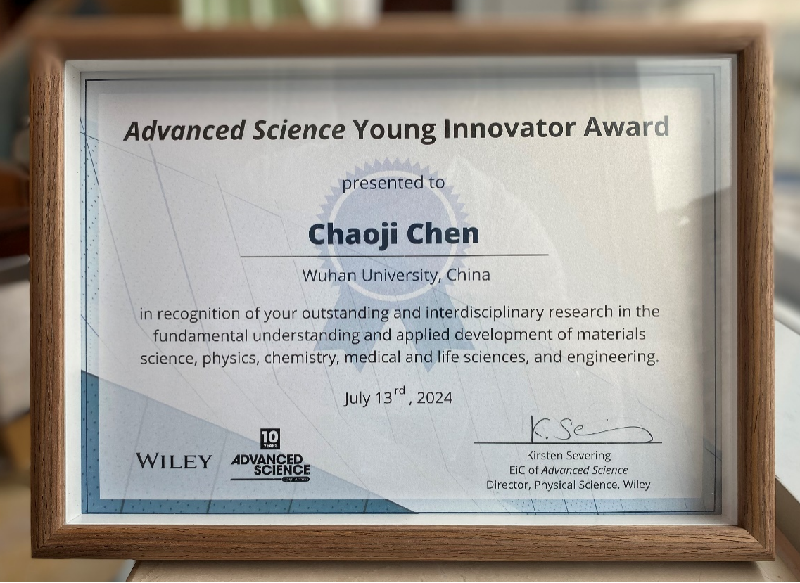陈朝吉教授获颁Advanced Science青年科学家创新奖,为全球六名获奖者之一。