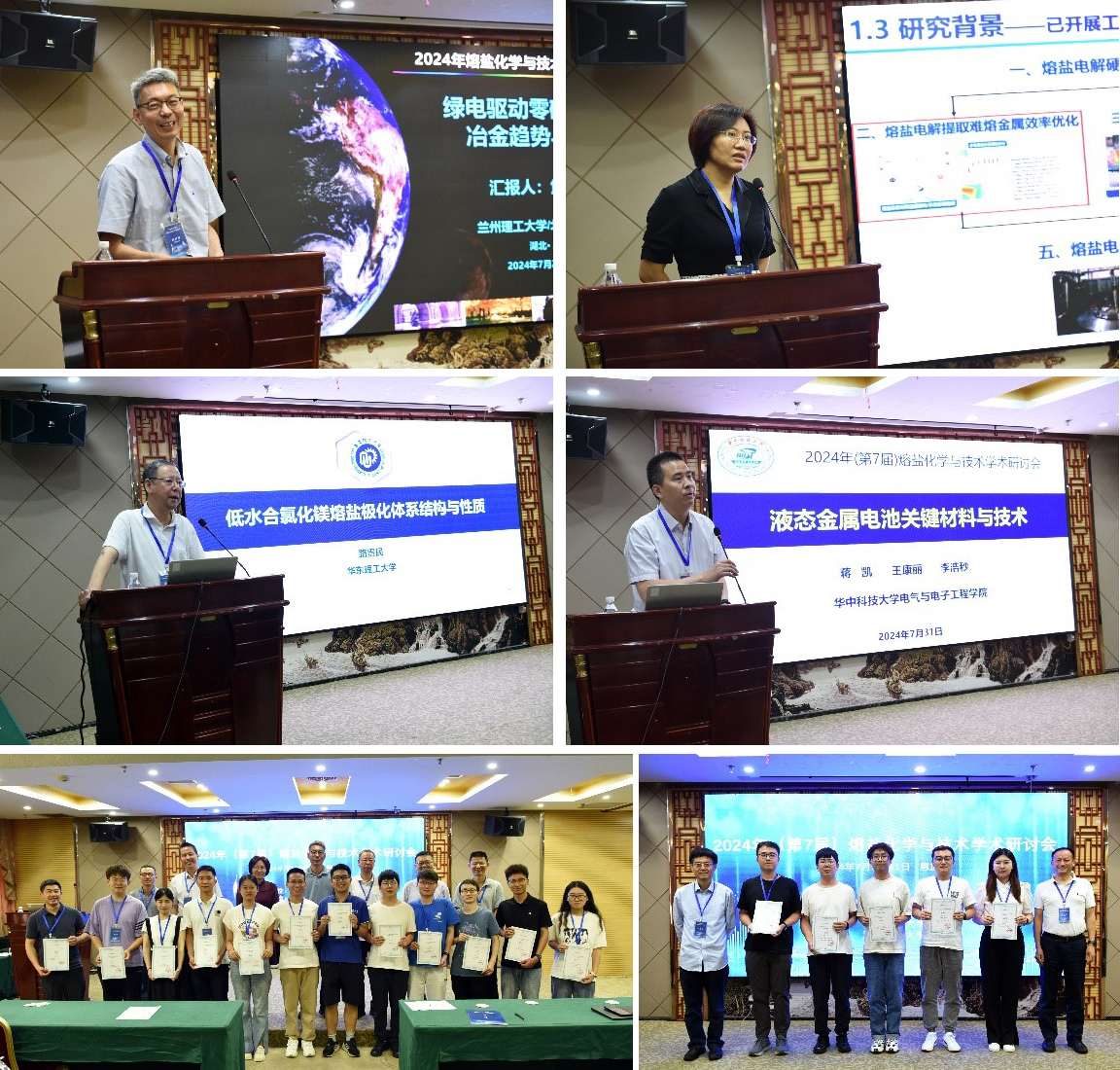 尹华意教授报告了“熔盐电解制备碱/碱土合金及应用”方面的研究工作,上海大学邹星礼教授报告了“熔盐/离子液体电化学创制微纳新材料探索”方面的研究成果,东北大学李犁教授作题为“先进新能源材料的熔盐法制备”的报告,华东理工大学路贵民教授分享“氯化镁熔盐极化体系熔盐结构与性质”方面的科研成果,湖北民族大学程新华教授介绍团队在熔盐领域方面的研究工作,华中科技大学蒋凯教授报告了“液态金属储能电池新材料与新技术”相关研究进展。在研究生报告讲评中,由专家评审出最佳报告奖和优秀报告奖,91沈先生