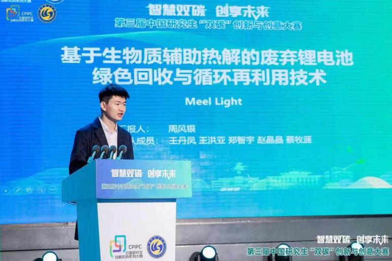 “Meel Light”团队成员均为尹华意教授指导的研究生,包括四名博士生、两名硕士生。他们的成果基于生物质辅助热解的废弃锂电池绿色回收与循环再利用技术,研究项目致力于低碳化回收废旧锂离子电池中的锂、钴、镍等关键金属,展现了出色的创新能力和团队协作精神。