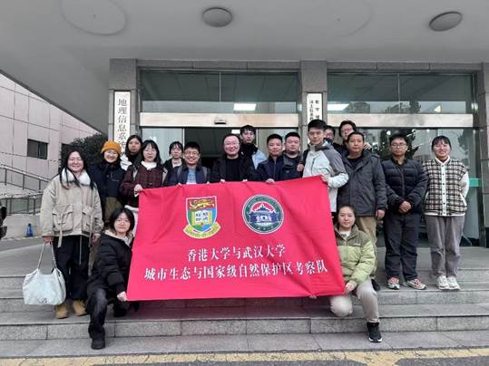 与香港大学的师生们成功进行了一系列学术交流活动,促进了内地与香港师生在生态环境领域的合作。为顺利推进本项目的进程,洪松教授在2024年3月至12月多次访问香港大学建筑学院,就项目与合作论文的主要内容、科学问题、进度等进行充分沟通与交流。洪松教授课题组的博士生、硕士生、本科生于2024年11月25至28日赴香港大学陈斌助理教授课题组访问,深入港大课堂,参与课题组的组会讨论。此次联合科考,通过考察武汉东湖、府河等城市湿地与唐家河国家级自然保护区,系统观测动植物分布及人类活动与环境变化对其的影响,特别是通过对采石场等周边环境的实地勘探,以及了解自然保护区内不同物候下野生动物迁徙与植物多样性变化等情况,加深了我们对人类活动与气候变化“复合影响”的认识。通过与当地工作者的深入对话,我们自身的生态保护责任感也得到了显著强化。