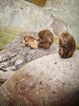 12月20日下午,师生们经过青川县采石场,来到唐家河国家级自然保护区。保护区地处岷山东北麓,龙门山北段的高山峡谷区,最高峰海拔3837米,相对高差2400多米,地形条件相当复杂。动植物资源丰富,国家重点保护植物有珙桐、连香树、水青树等;国家重点保护动物有大熊猫、金丝猴、扭角羚、云豹、绿尾虹雉等20多种。刚到达酒店,便在大门口遇到野生藏酋猴群,可见唐家河野生动物之丰富密集。