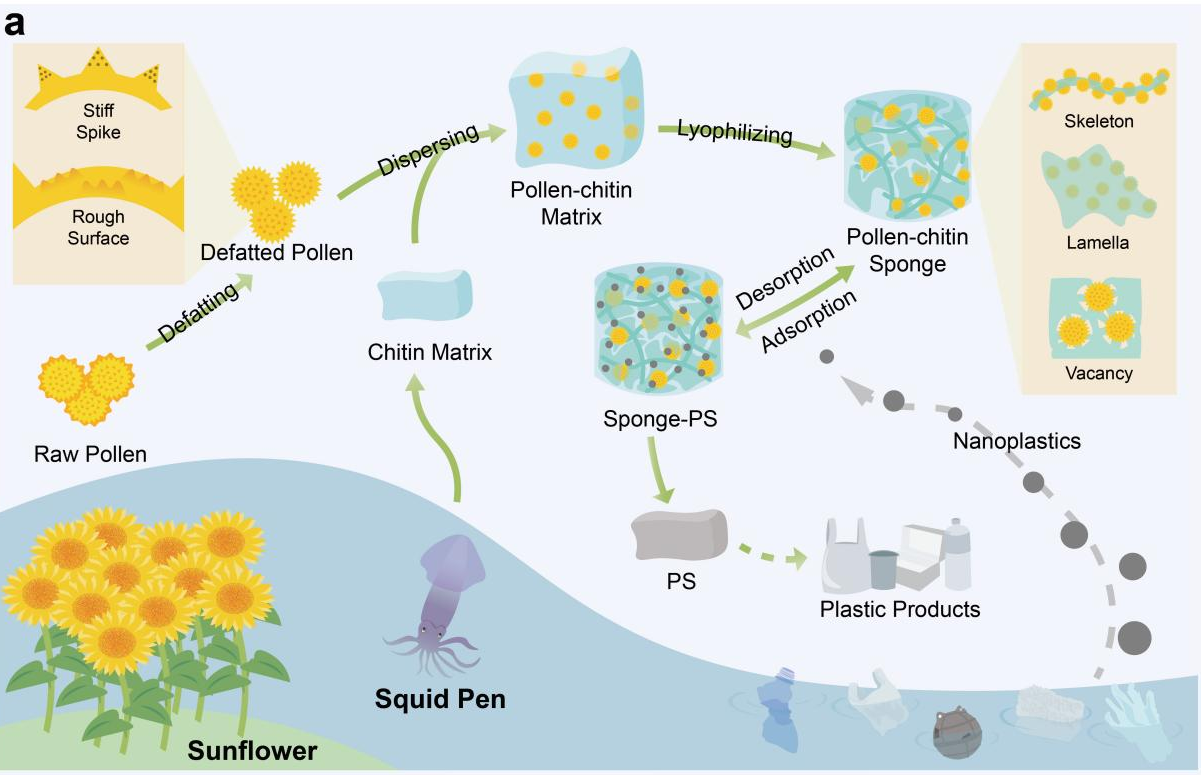 第一步:花粉+甲壳素——微纳米塑料的“天然捕手”