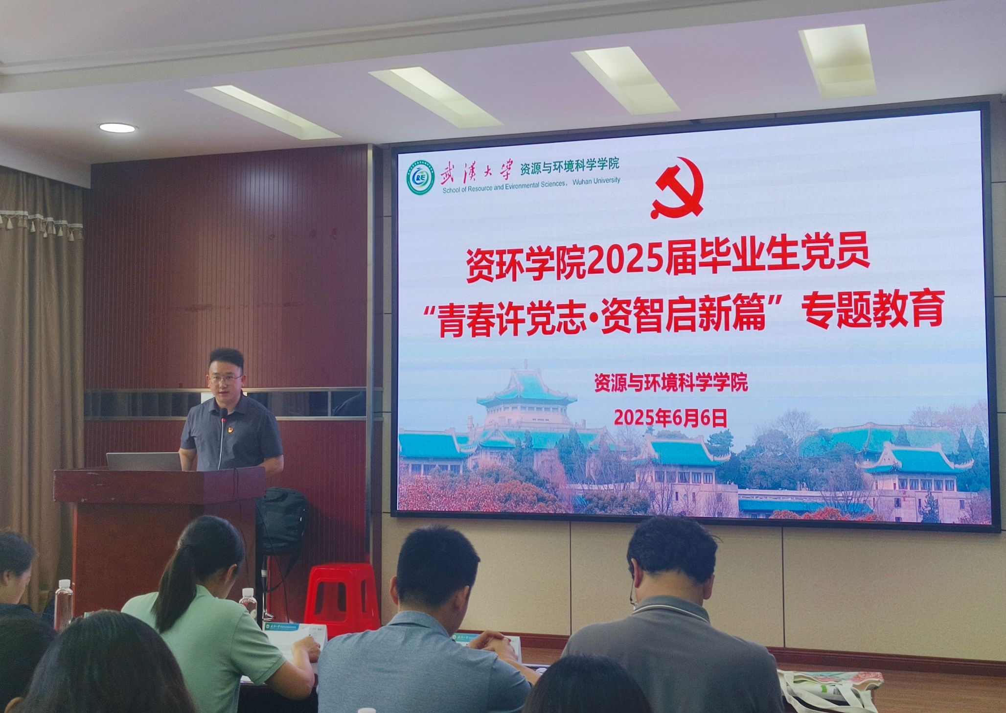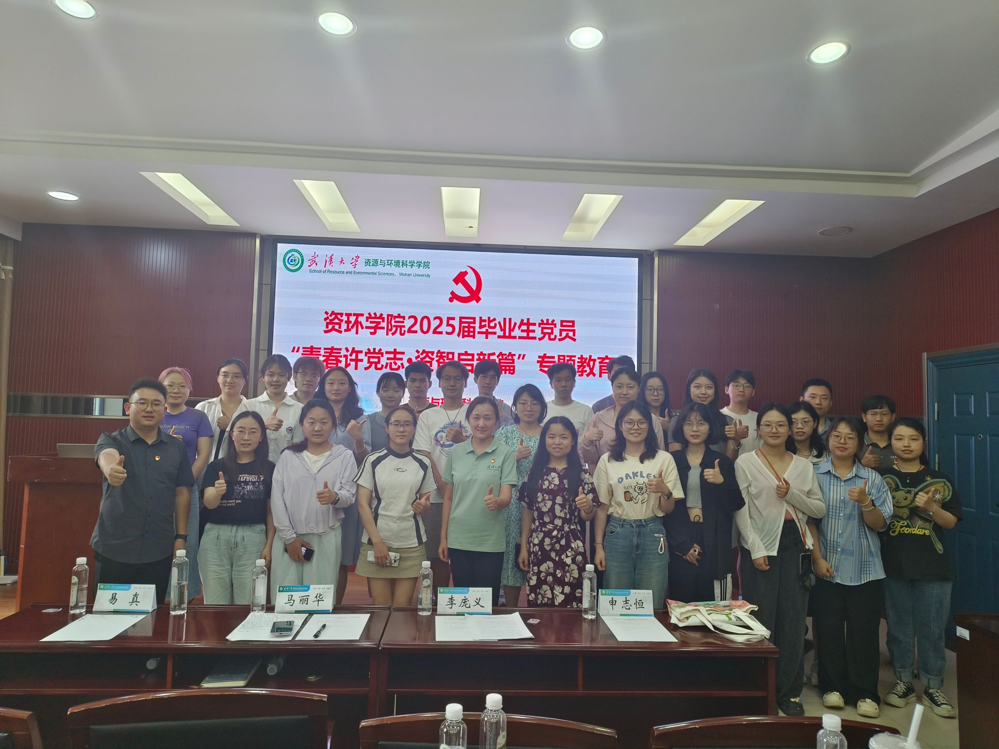 为加强2025届研究生思想政治教育,强化毕业生党员身份意识,激励研究生将青春之志融入强国伟业,6月6日下午,资环学院2025届毕业生党员“青春许党志·资智启新篇”主题教育活动在学院220报告厅举行。学院党委副书记马丽华老师,主任级组织员易真老师,学生工作办公室副主任、团委副书记梅菲老师,团委副书记、研究生辅导员仝德富老师,以及部分毕业生党员共计60余人参加活动。活动由仝德富老师主持。