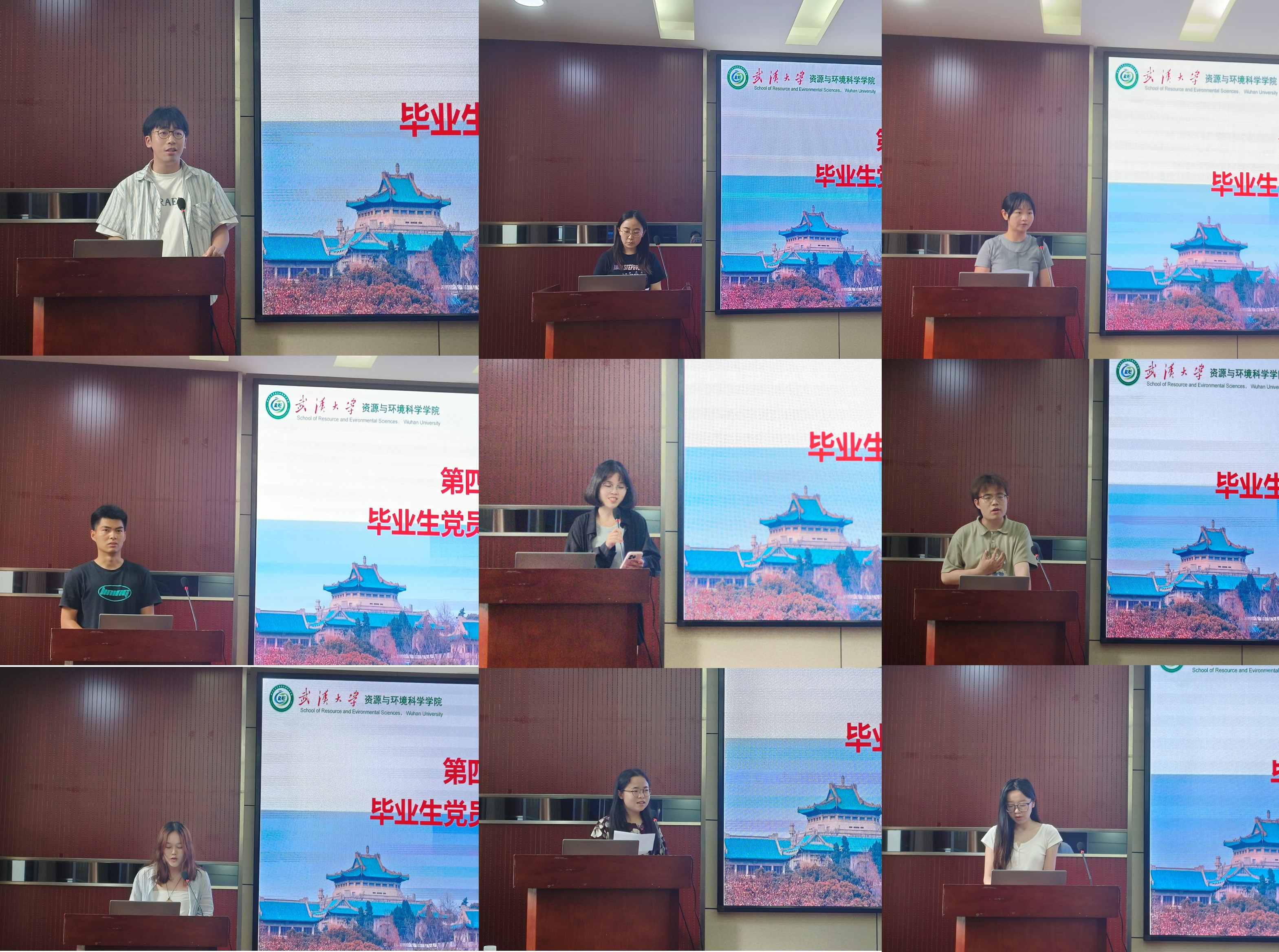在活动第四部分毕业生分享环节,来自资环院17个研究生党支部的17位毕业生党员代表依次分享了自己的成长感悟。环境二支部付瑶佳同学用“成长、坚守和感恩”三个关键词概括了自己的感悟。她感谢学院提供的实验平台和科研支持,以及党支部在生活与学习中的关怀,并代表支部的毕业生党员庄严承诺,无论未来身在何方,都将牢记校训,以共产党员的初心守护绿水青山,用专业所学服务美丽中国建设。其他党员代表也纷纷发言,分享了自己的求学经历、科研心得以及对未来的展望,展现了新时代青年党员的风采与担当。