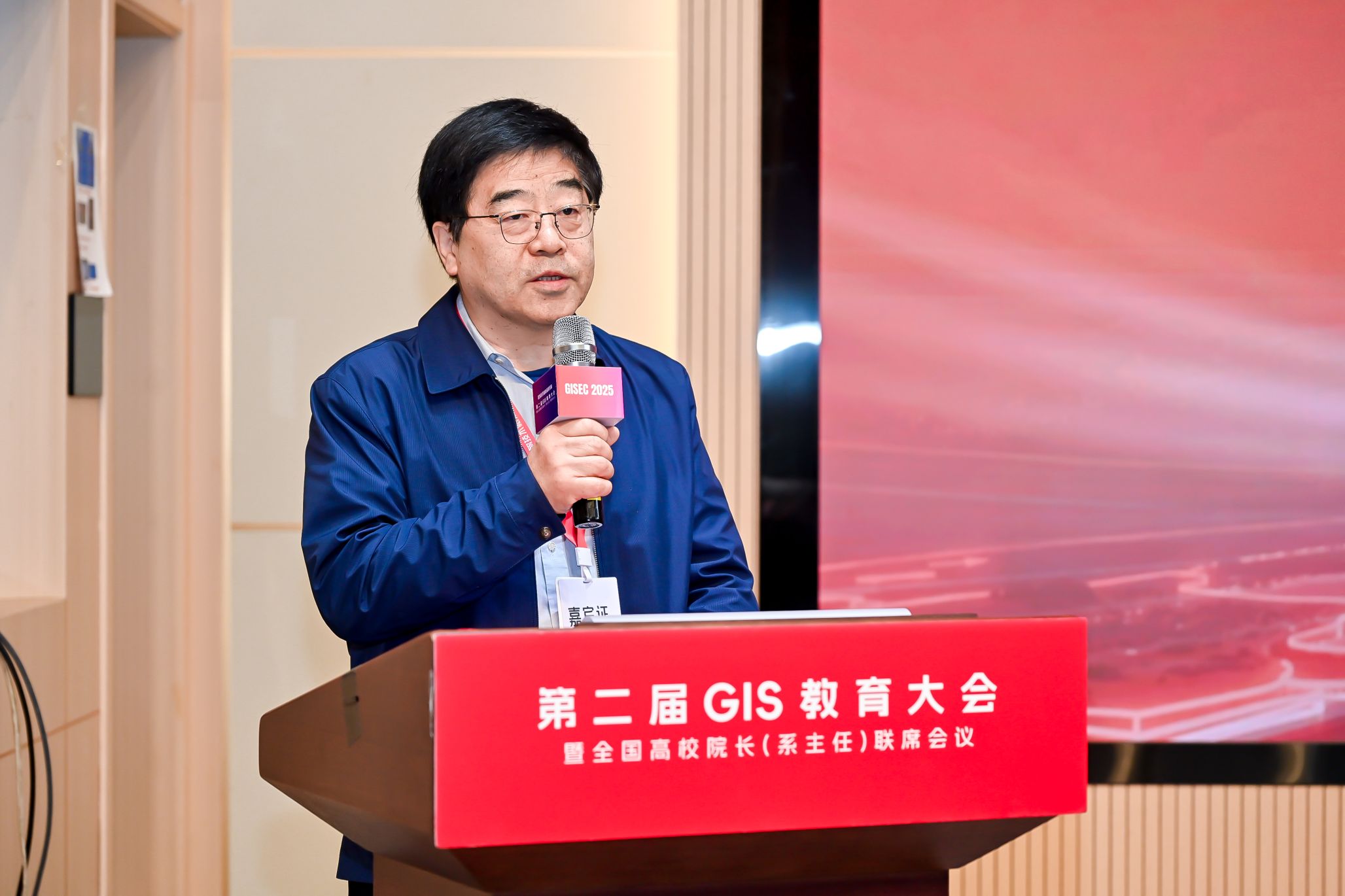 教育部高等学校地理科学类专业教学指导委员会副主任,南京师范大学汤国安教授在开幕式致辞。针对当前GIS教育面临的时代命题,他提出GIS教育要贯通基础理论与前沿技术、课堂教学与实践创新、国际视野与本土情怀,在引入全球GIS资源的同时立足国情,培养兼具全球治理能力与服务国家战略担当的人才。